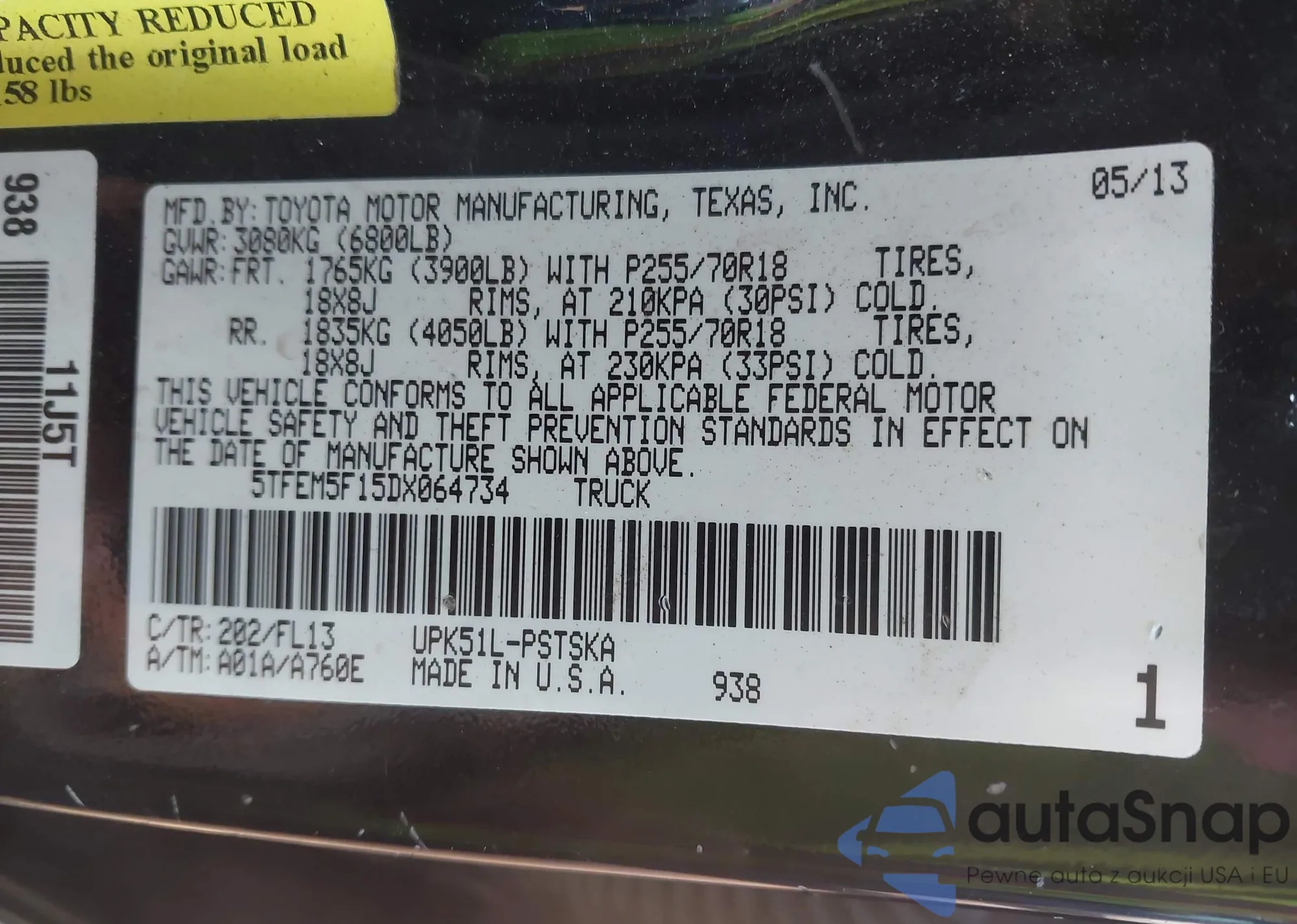 • VIN: 5TFEM5F15DX064734