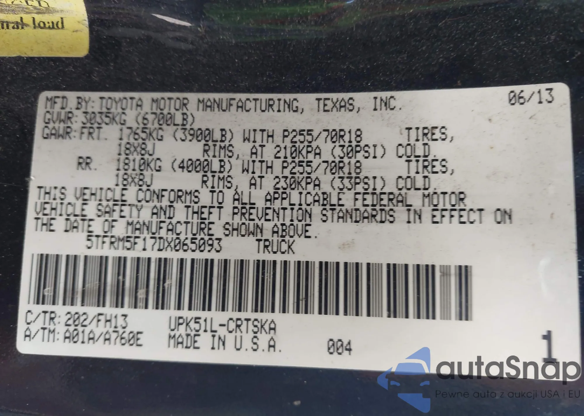 VIN: 5TFRM5F17DX065093