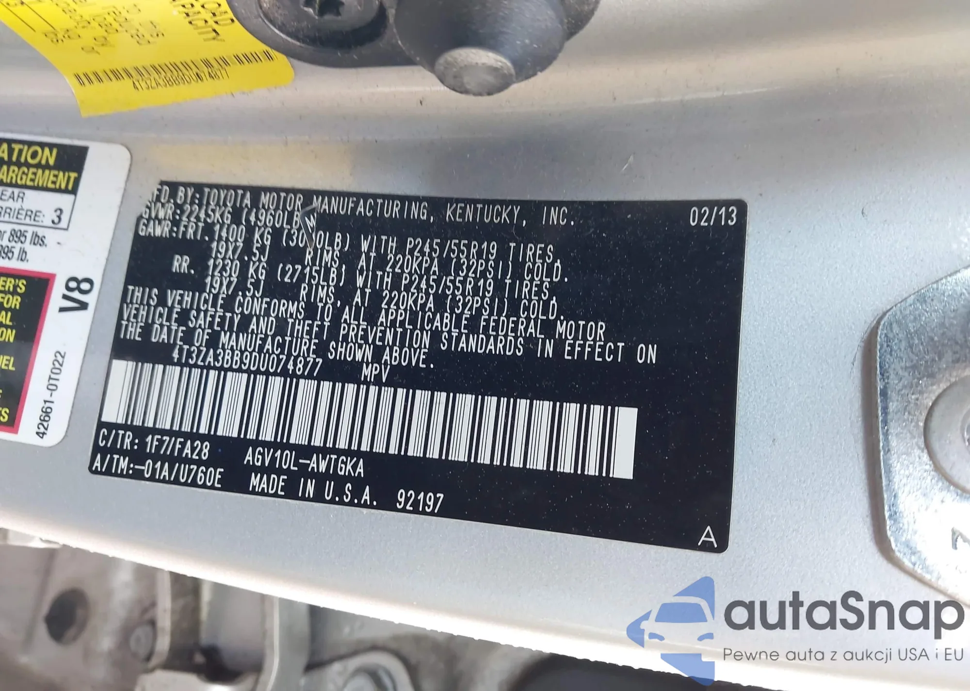 VIN: 4T3ZA3BB9DU074877