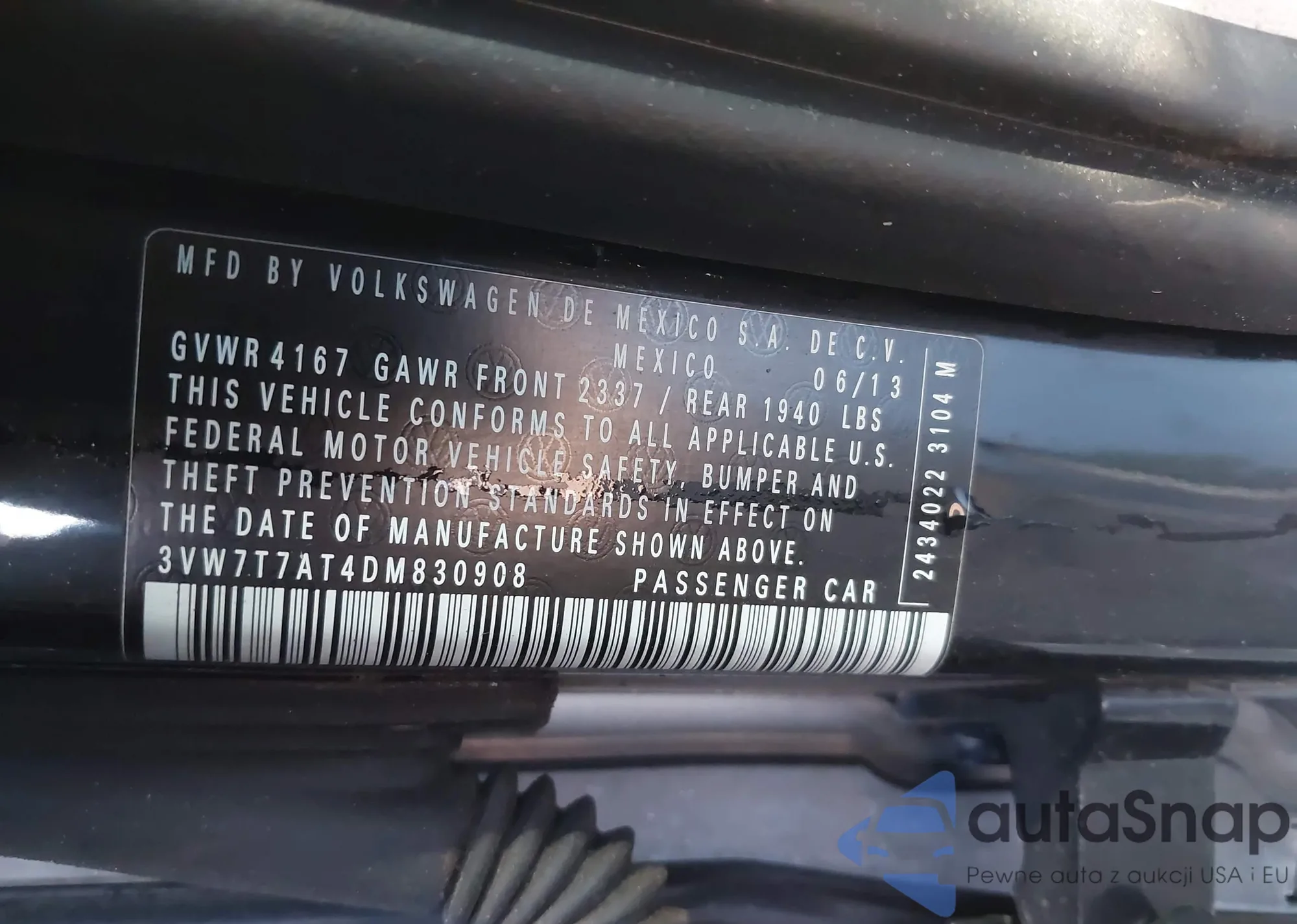 VIN: 3VW7T7AT4DM830908