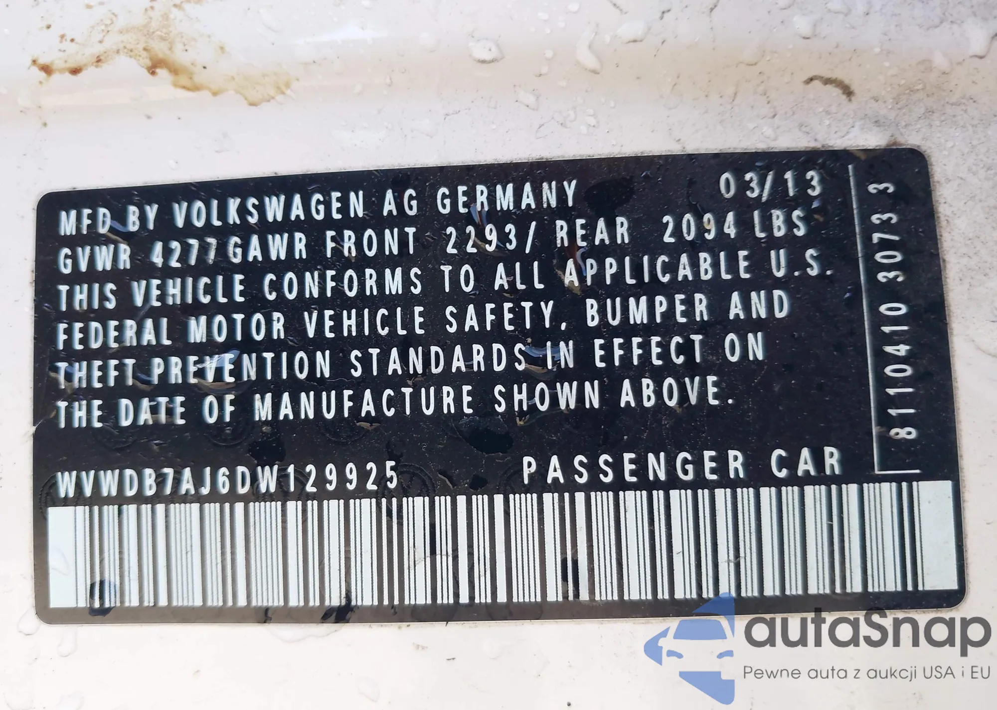 VIN: WVWDB7AJ6DW129925