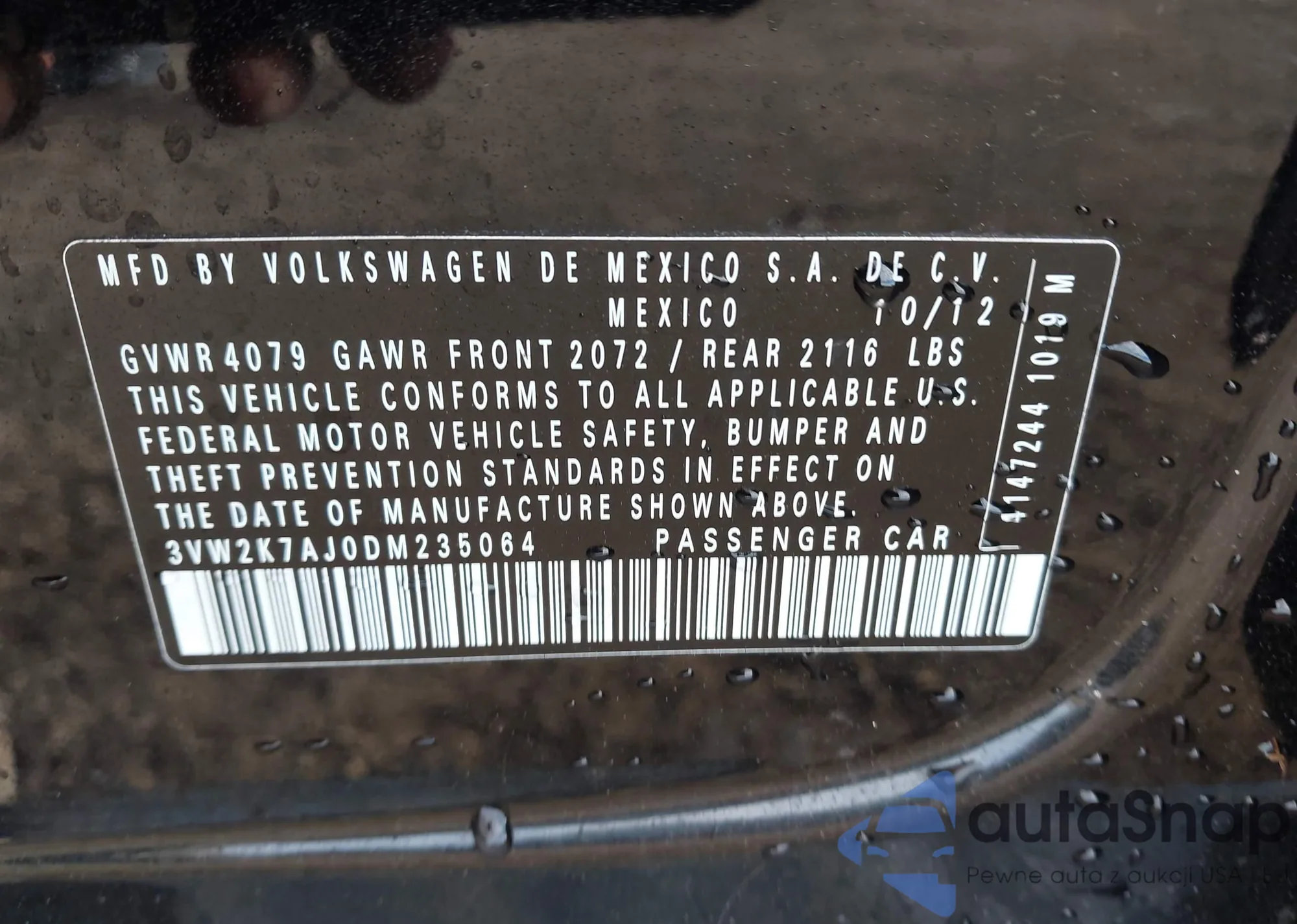 Автомобиль Volkswagen Jetta 2013 (VIN 3VW2K7AJ0DM235064) ранее не участвовал в торгах. Документы чистые, пробег соответствует или ниже среднего по рынку. Продаётся страховой компанией — рекомендуем покупку. Доставка в порт займет около 6–8 недель.