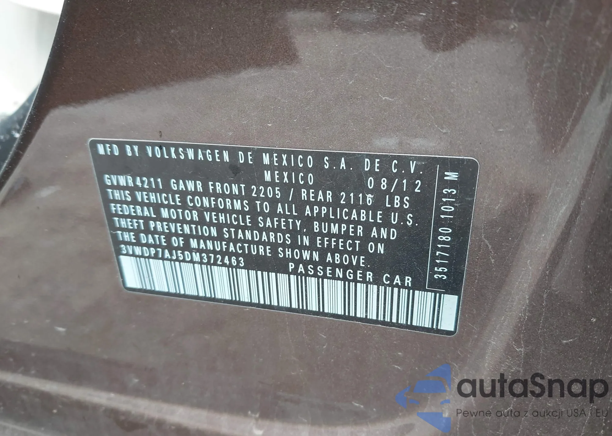 VIN: 3VWDP7AJ5DM372463
