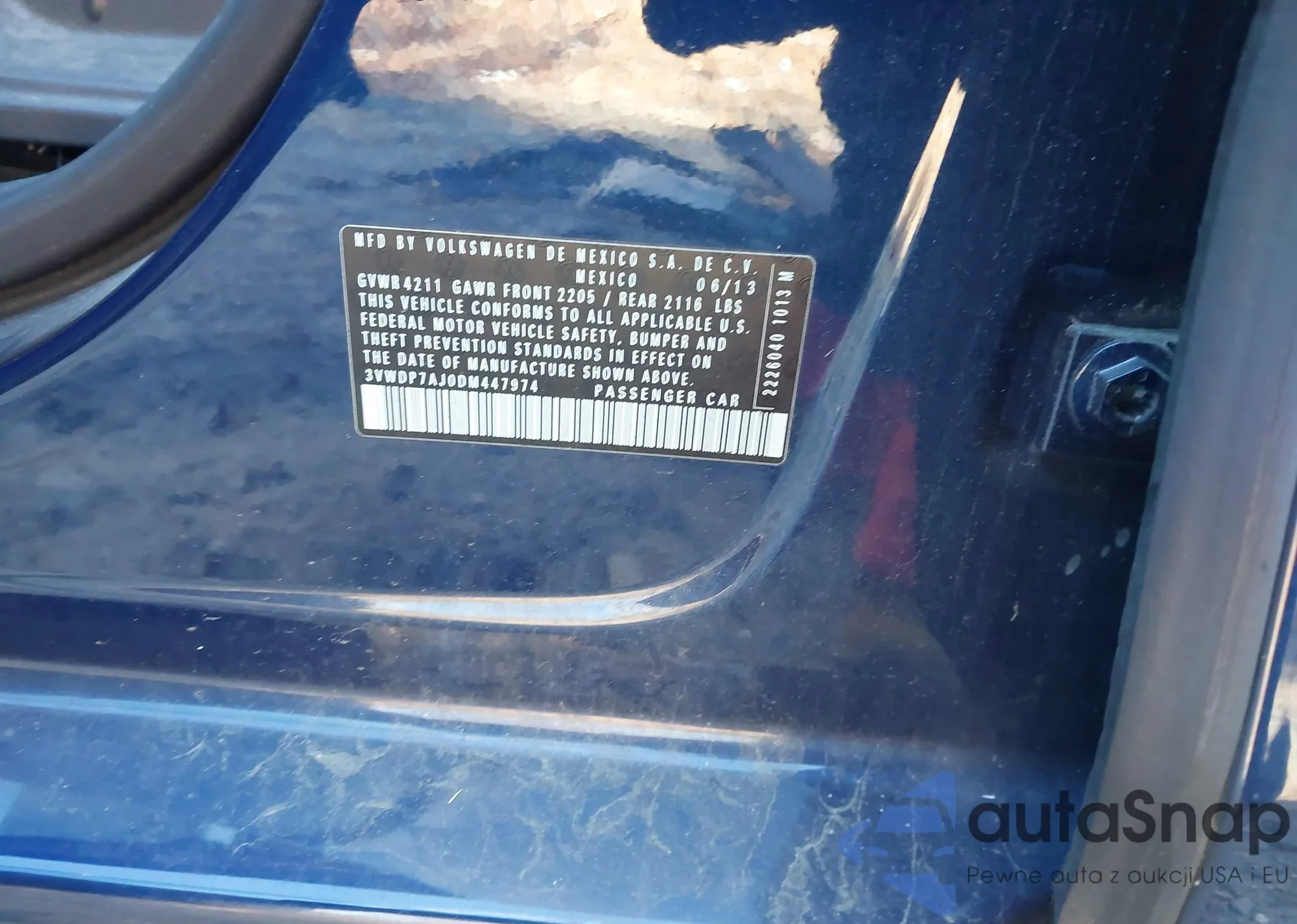 VIN: 3VWDP7AJ0DM447974