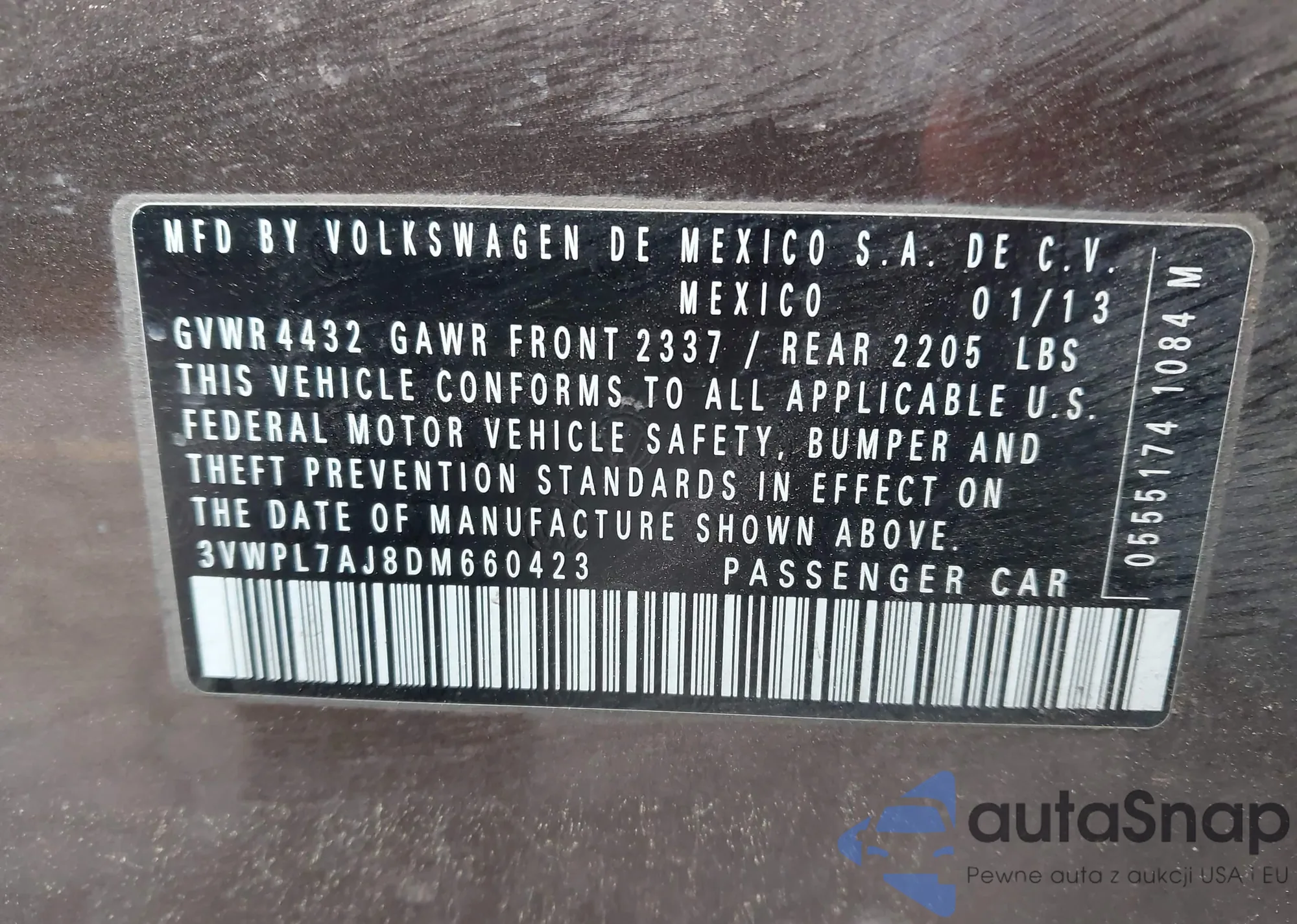 VIN: 3VWPL7AJ8DM660423