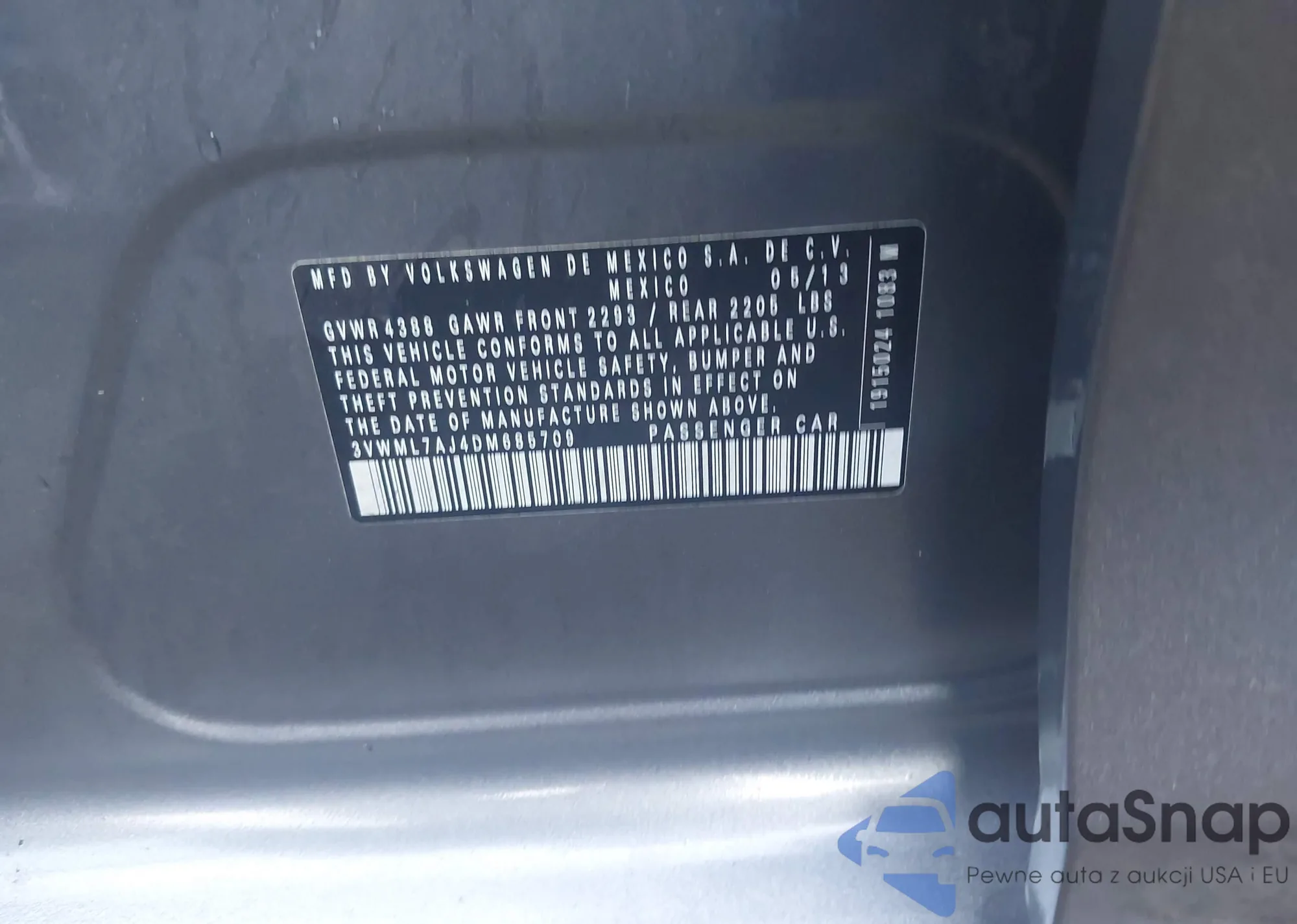 VIN: 3VWML7AJ4DM685709