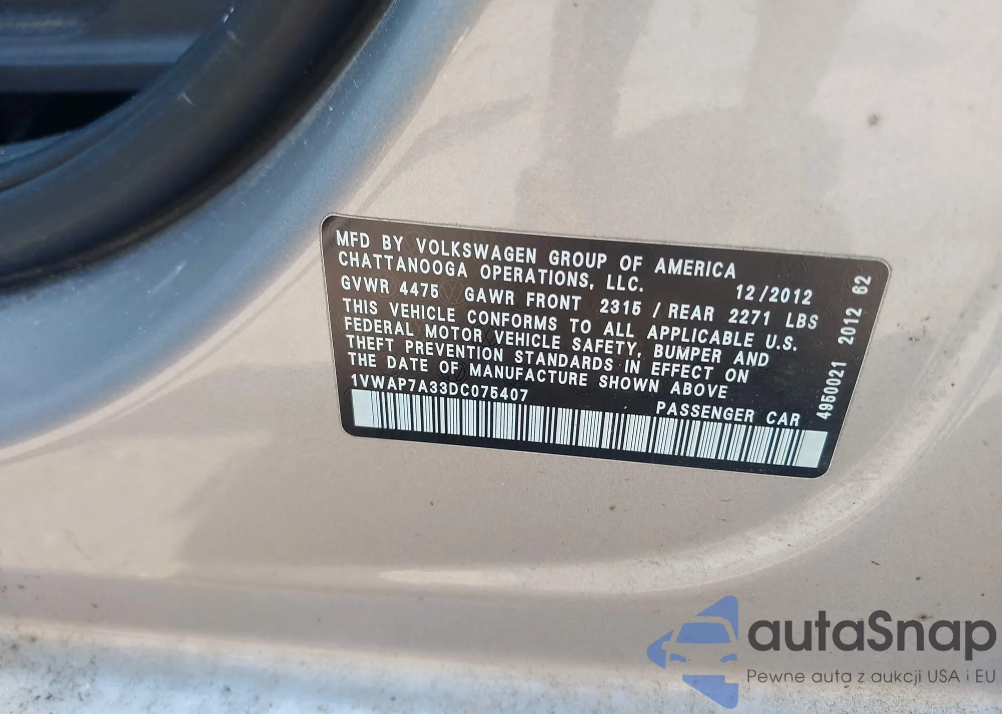 VIN: 1VWAP7A33DC075407