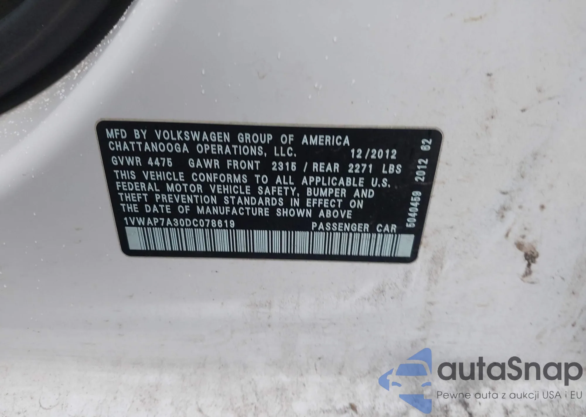 VIN: 1VWAP7A30DC078619