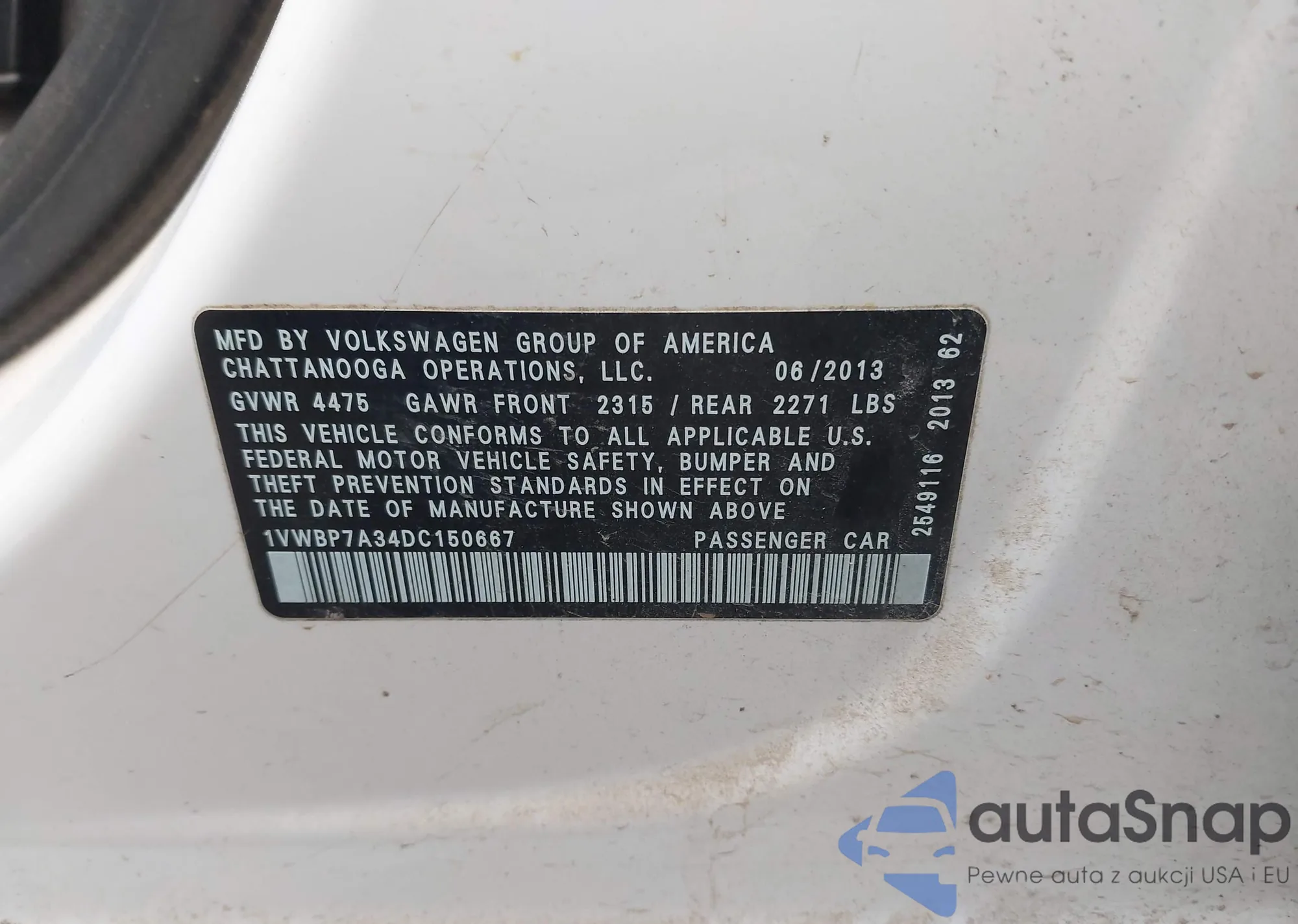VIN: 1VWBP7A34DC150667