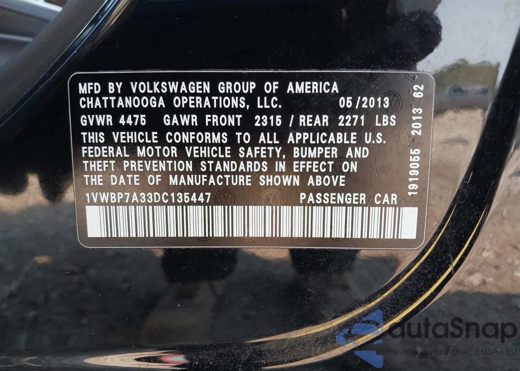 VIN: 1VWBP7A33DC135447
