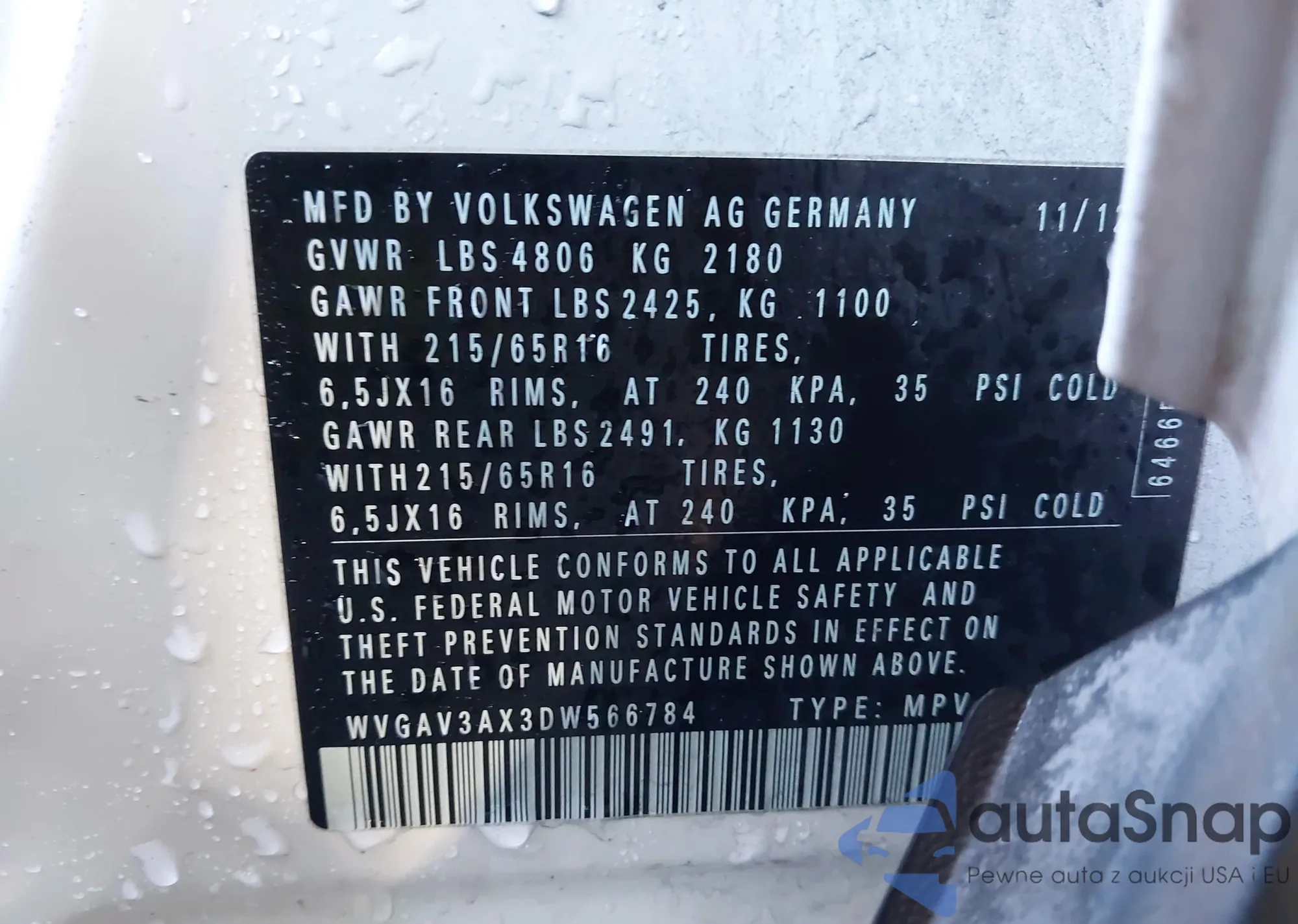 VIN: WVGAV3AX3DW566784
