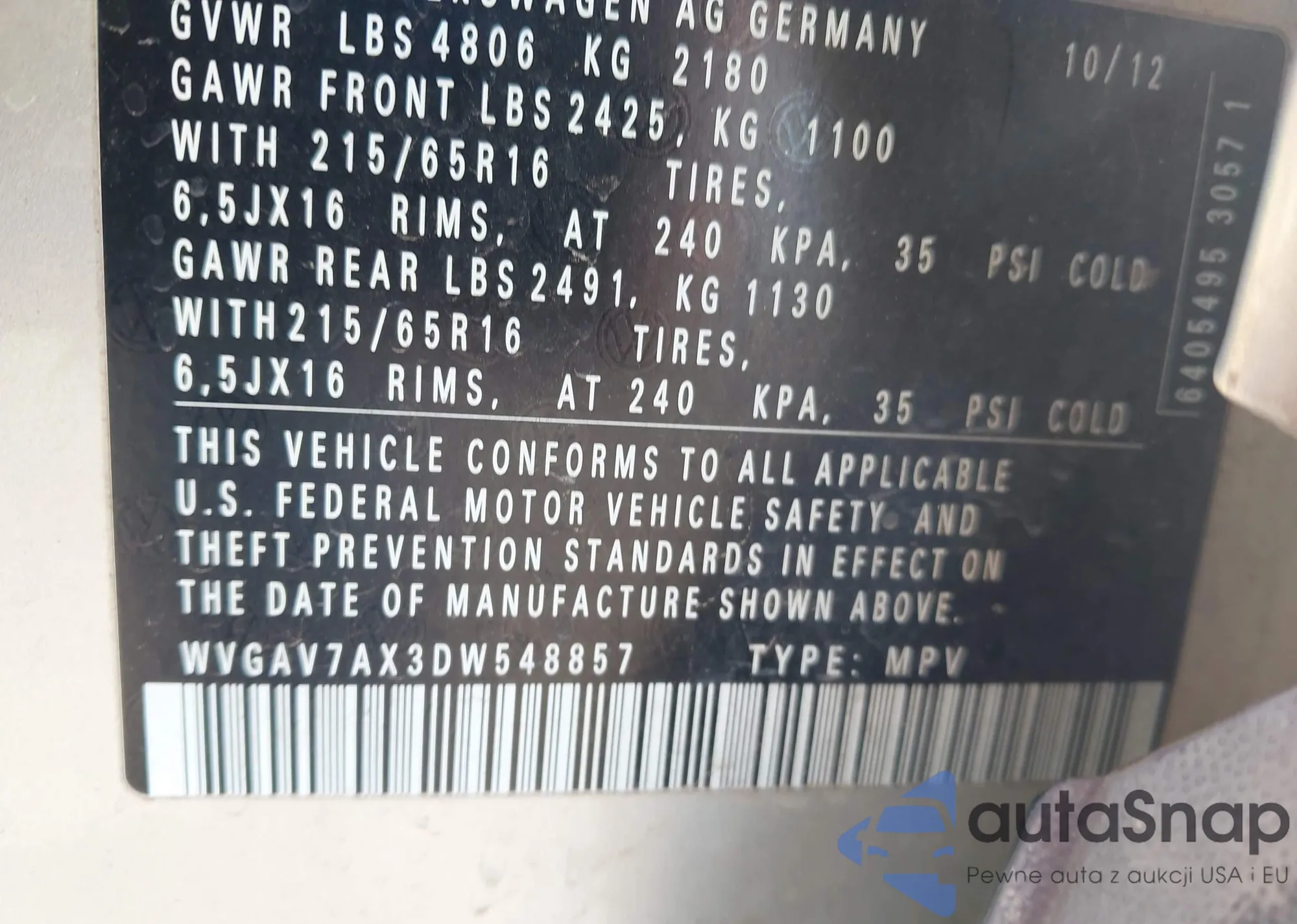 VIN: WVGAV7AX3DW548857