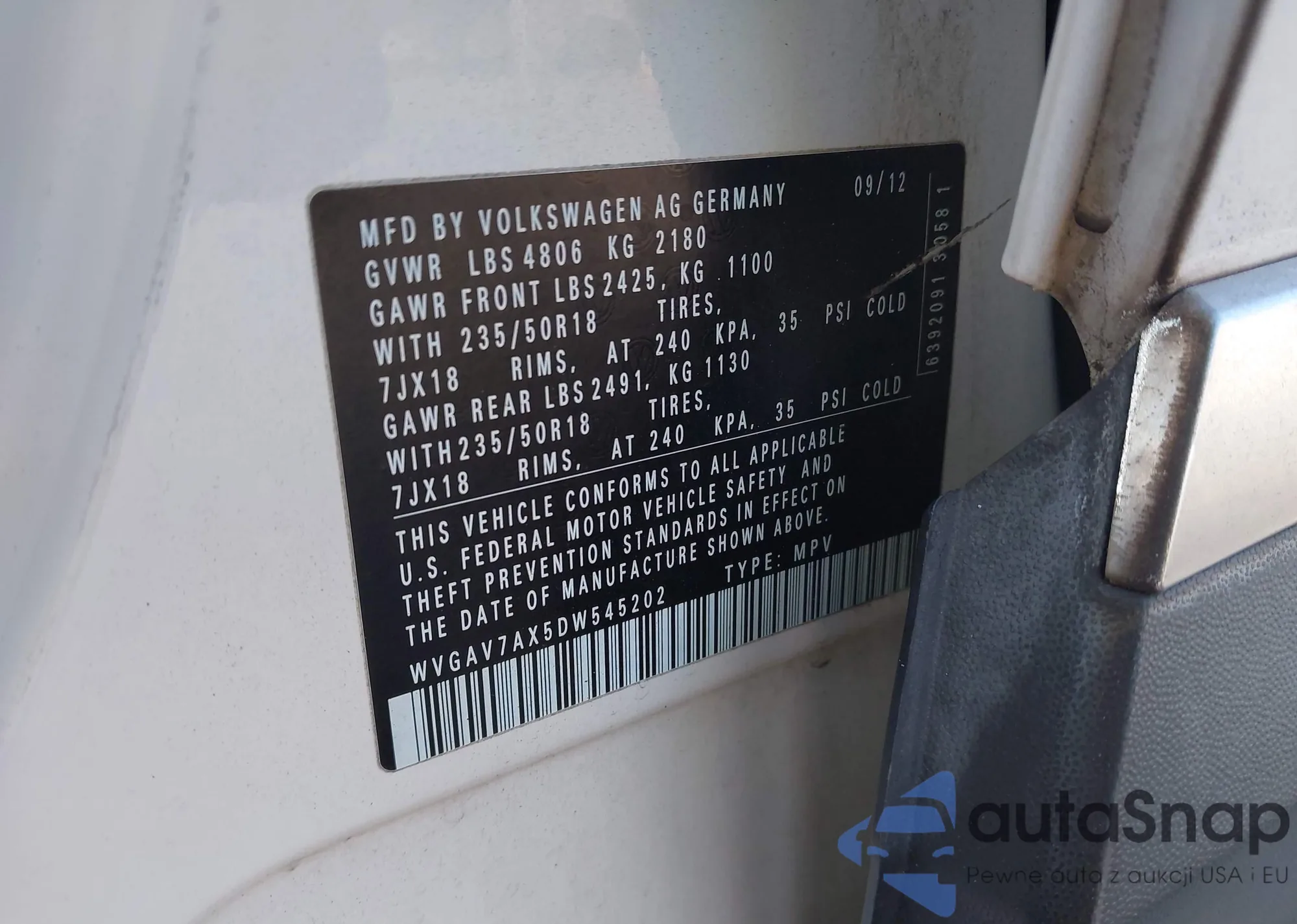 VIN: WVGAV7AX5DW545202