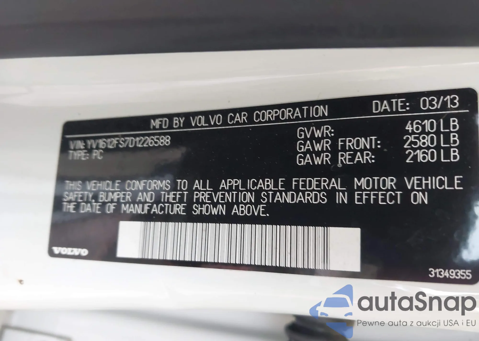 VIN: YV1612FS7D1226588