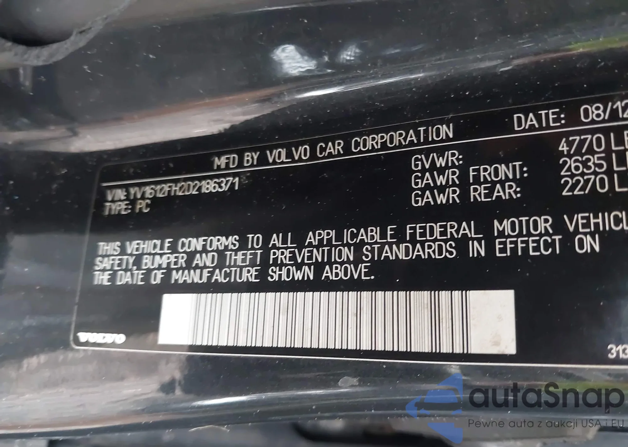 VIN: YV1612FH2D2186371