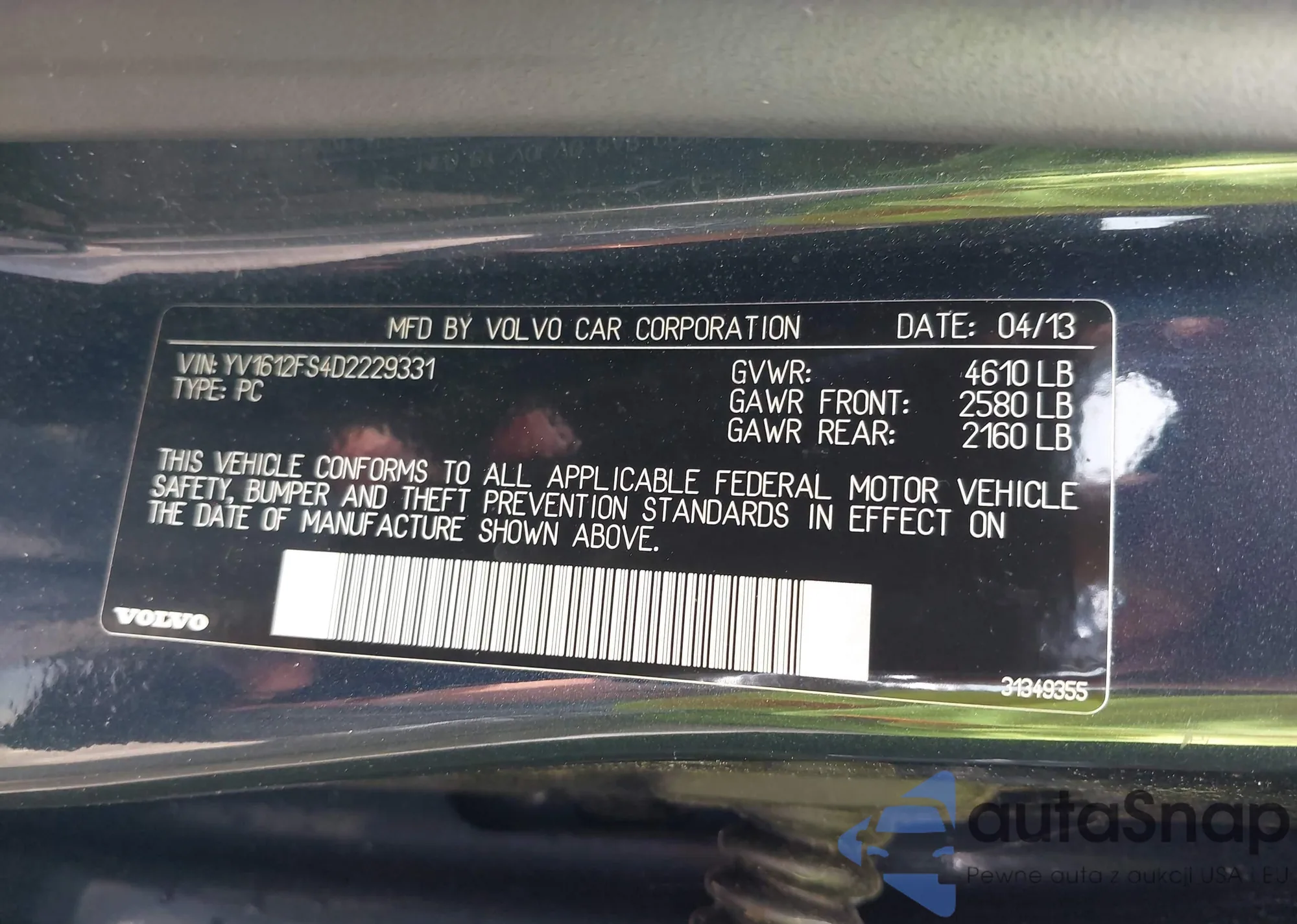 VIN: YV1612FS4D2229331