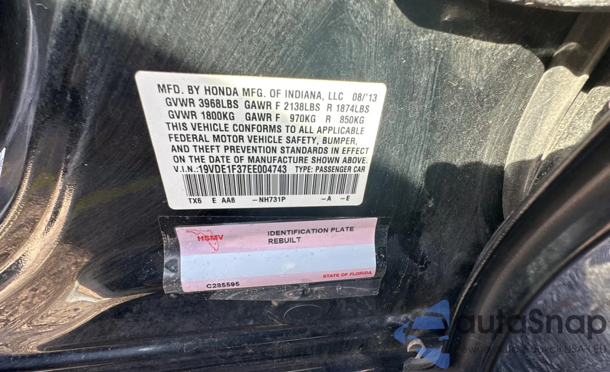 VIN: 19VDE1F37EE004743