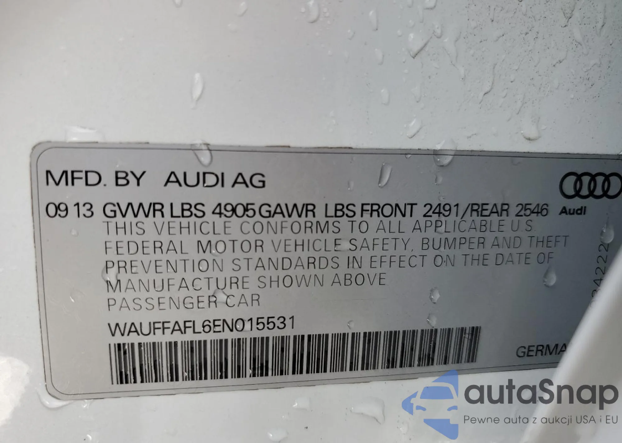 • VIN: WAUFFAFL6EN015531