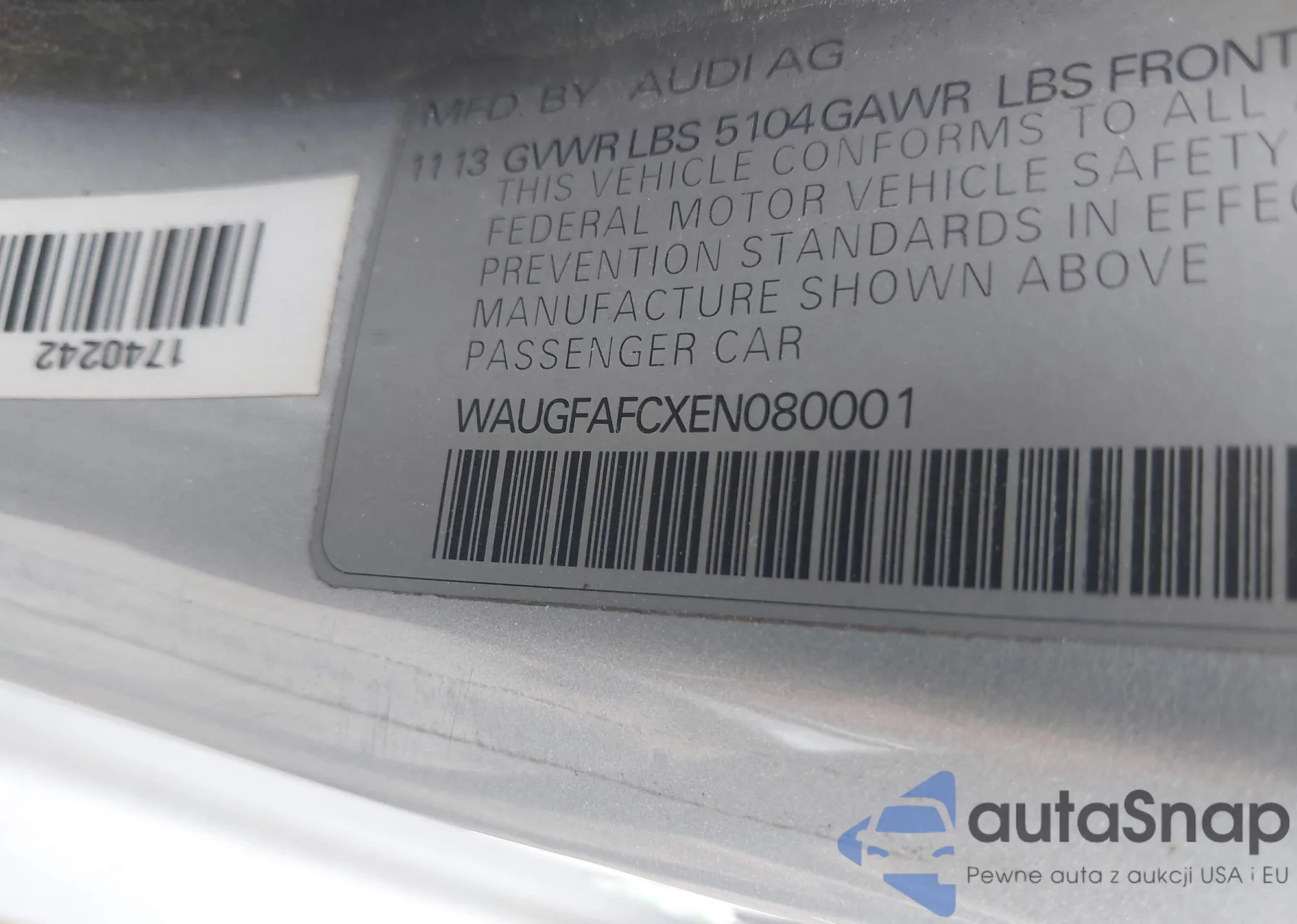 VIN: WAUGFAFCXEN080001