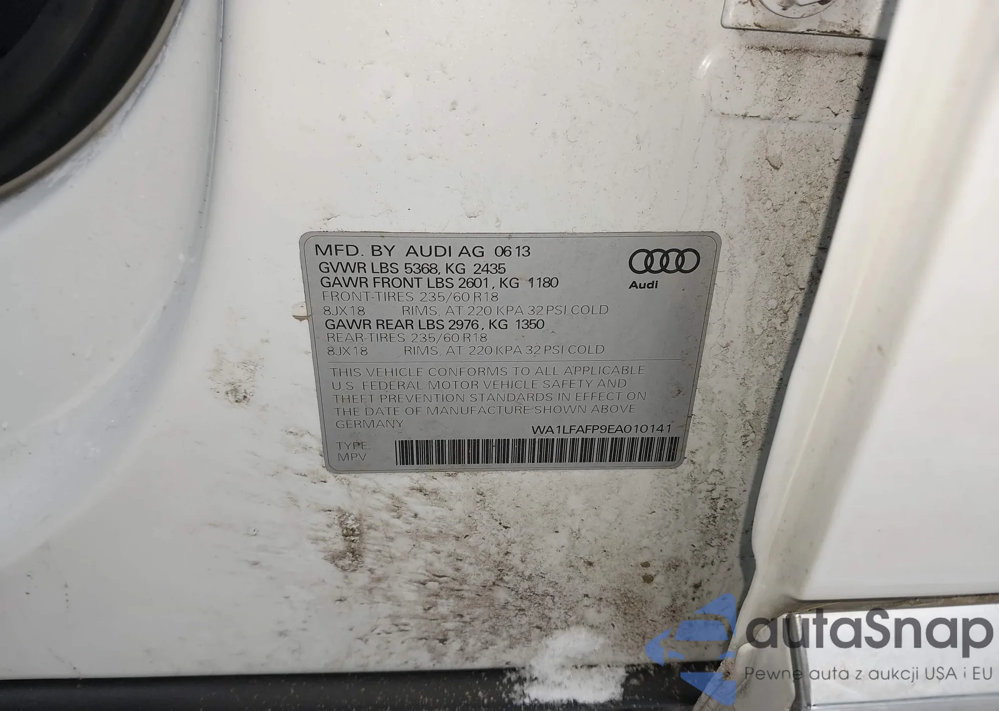 • VIN: WA1LFAFP9EA010141