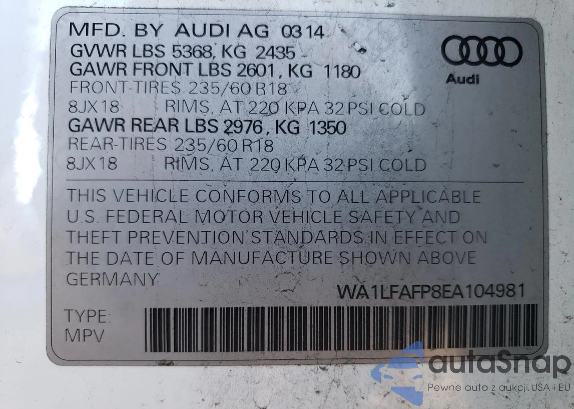 • VIN: WA1LFAFP8EA104981