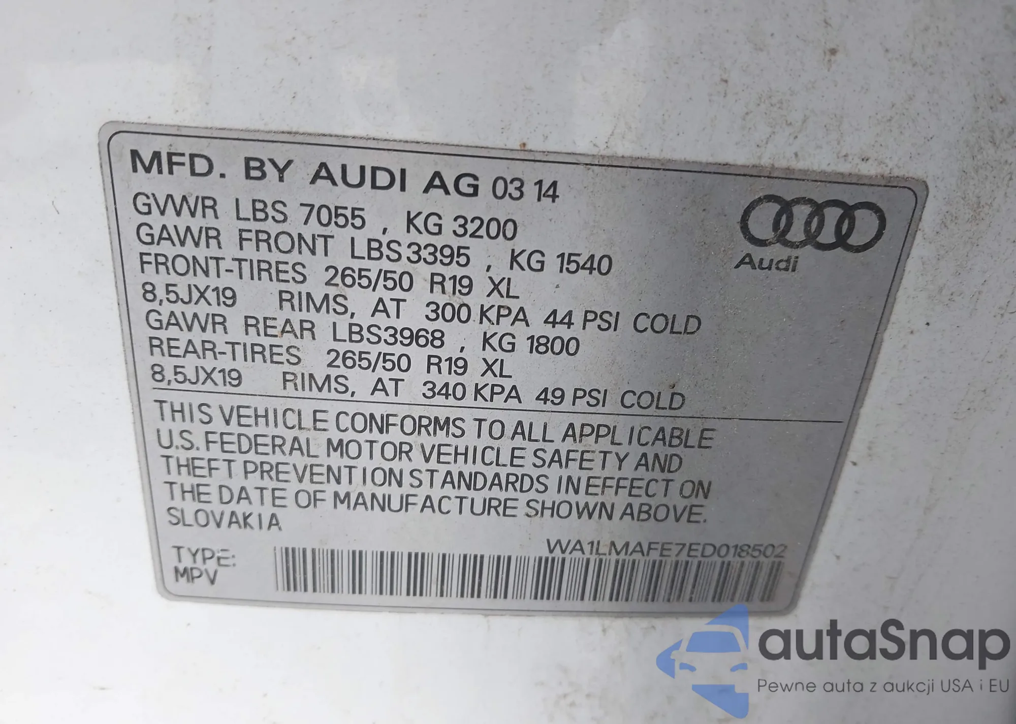 Автомобиль Audi Q7 2014 (VIN WA1LMAFE7ED018502) уже участвовал в торгах 1 раз(а) и/или продаётся непроверенным продавцом. Рекомендуем проверить отчет Carfax и подтвердить возможность регистрации перед покупкой.
