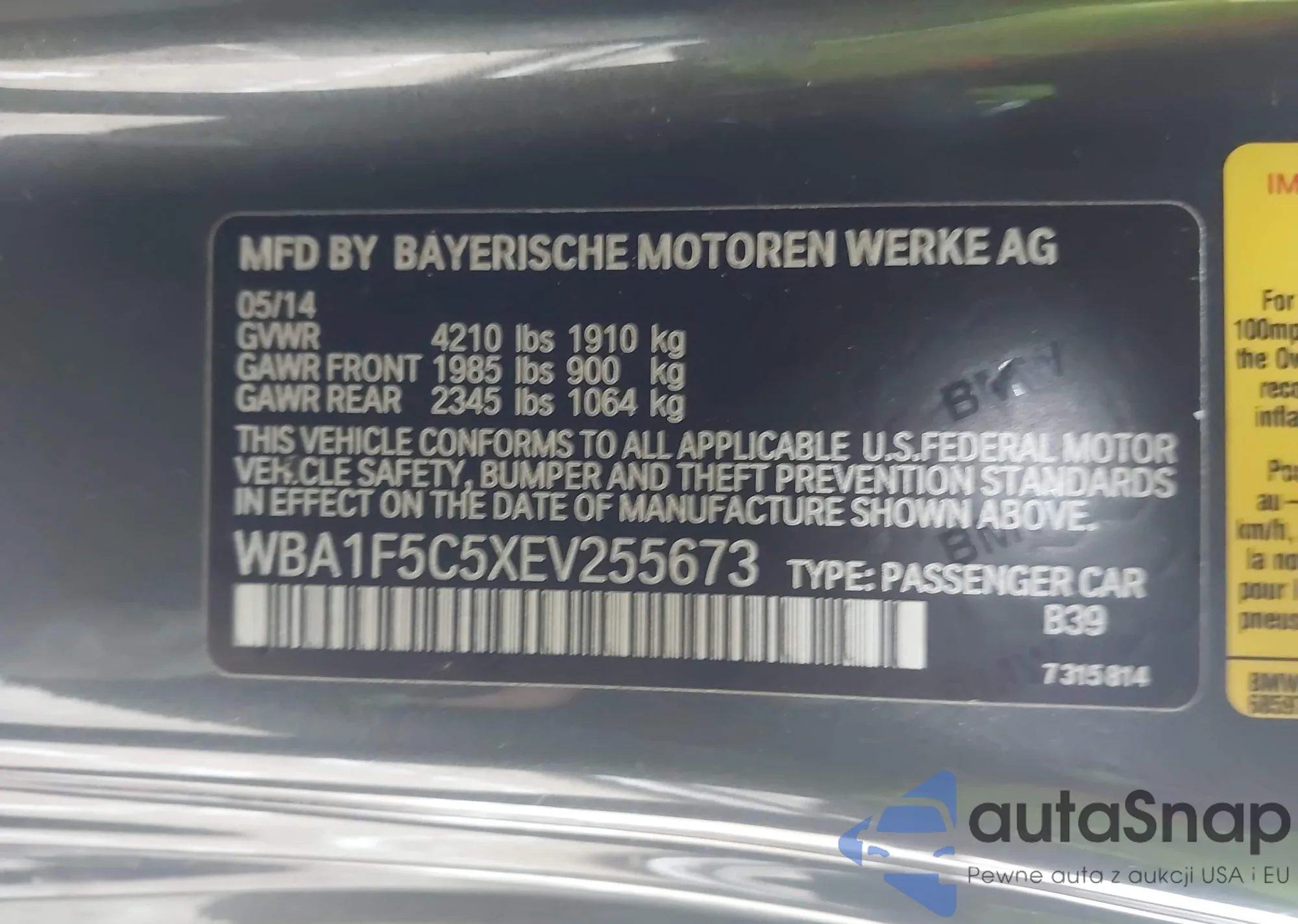 Автомобиль BMW 2er 2014 (VIN WBA1F5C5XEV255673) ранее не участвовал в торгах. Документы чистые, пробег соответствует или ниже среднего по рынку. Продаётся страховой компанией — рекомендуем покупку. Доставка в порт займет около 6–8 недель.
