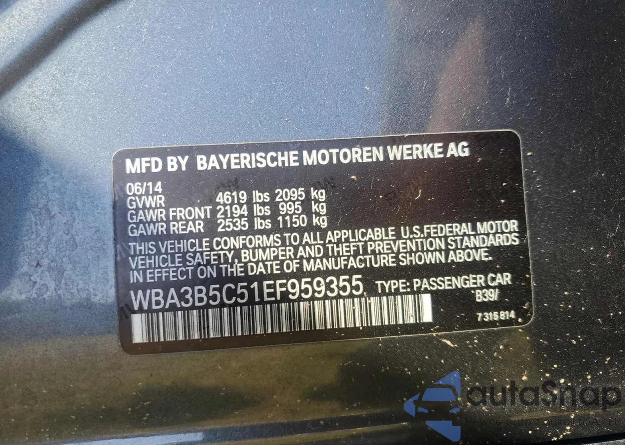 VIN: WBA3B5C51EF958355