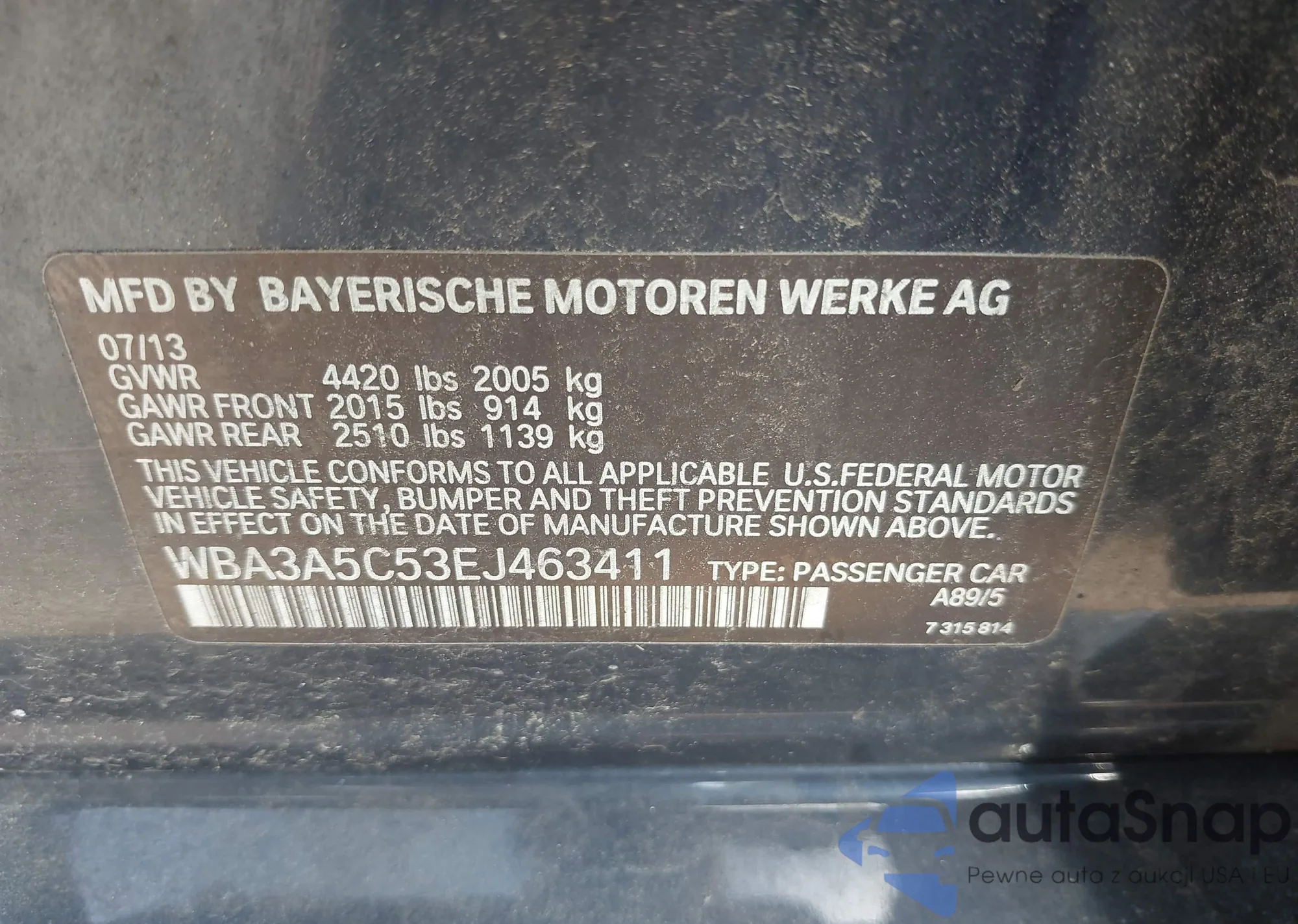 VIN: WBA3A5C53EJ463411