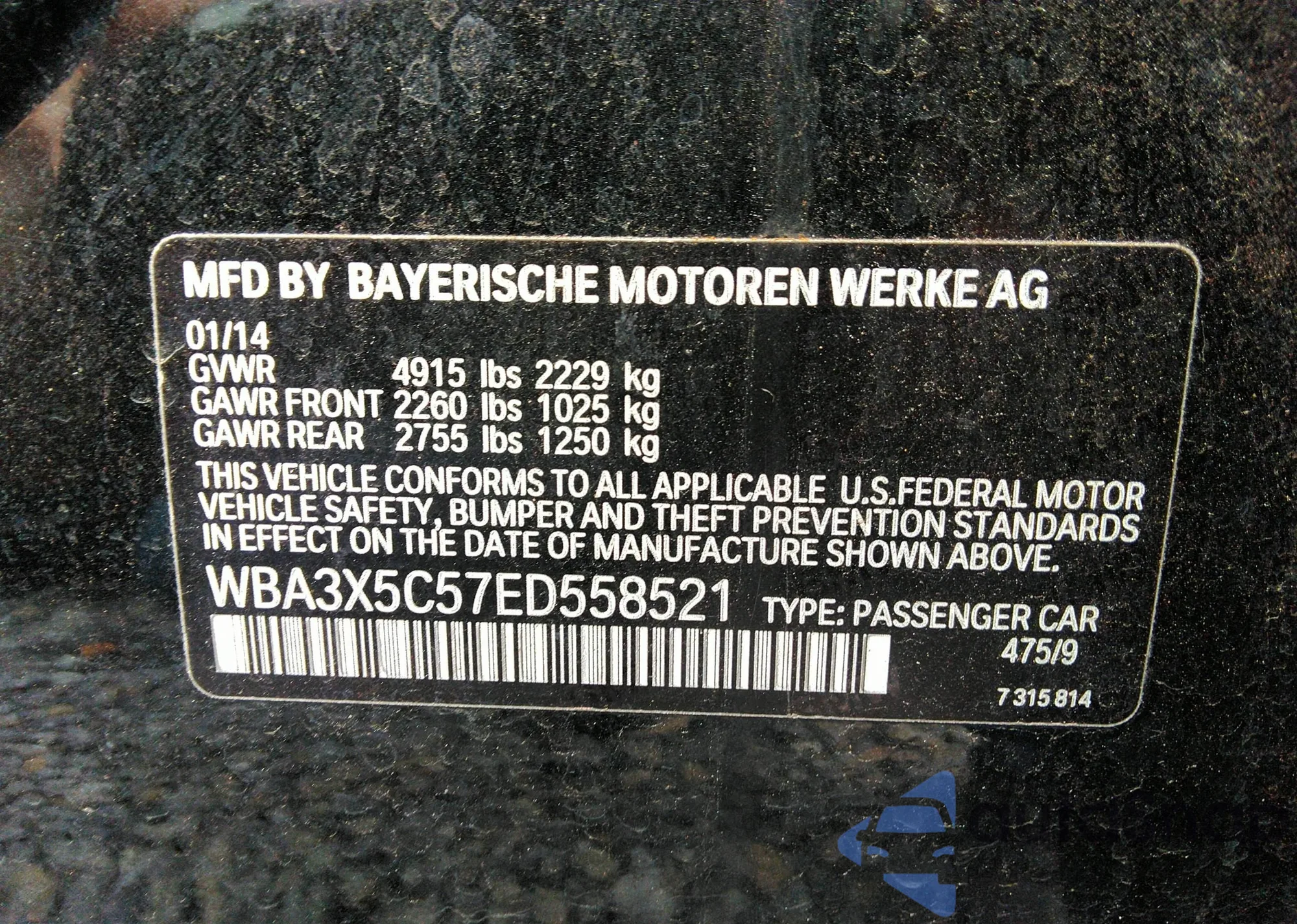 VIN: WBA3X5C57ED558521