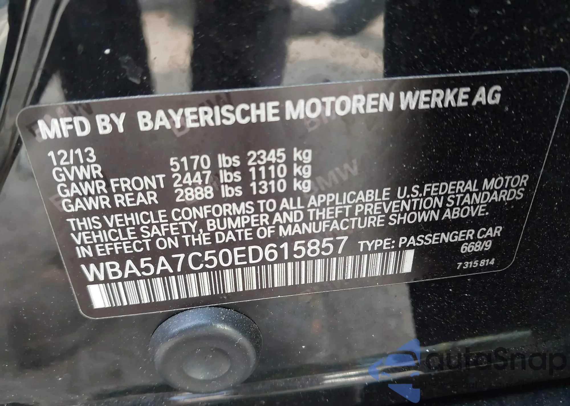 VIN: WBA5A7C50ED615857