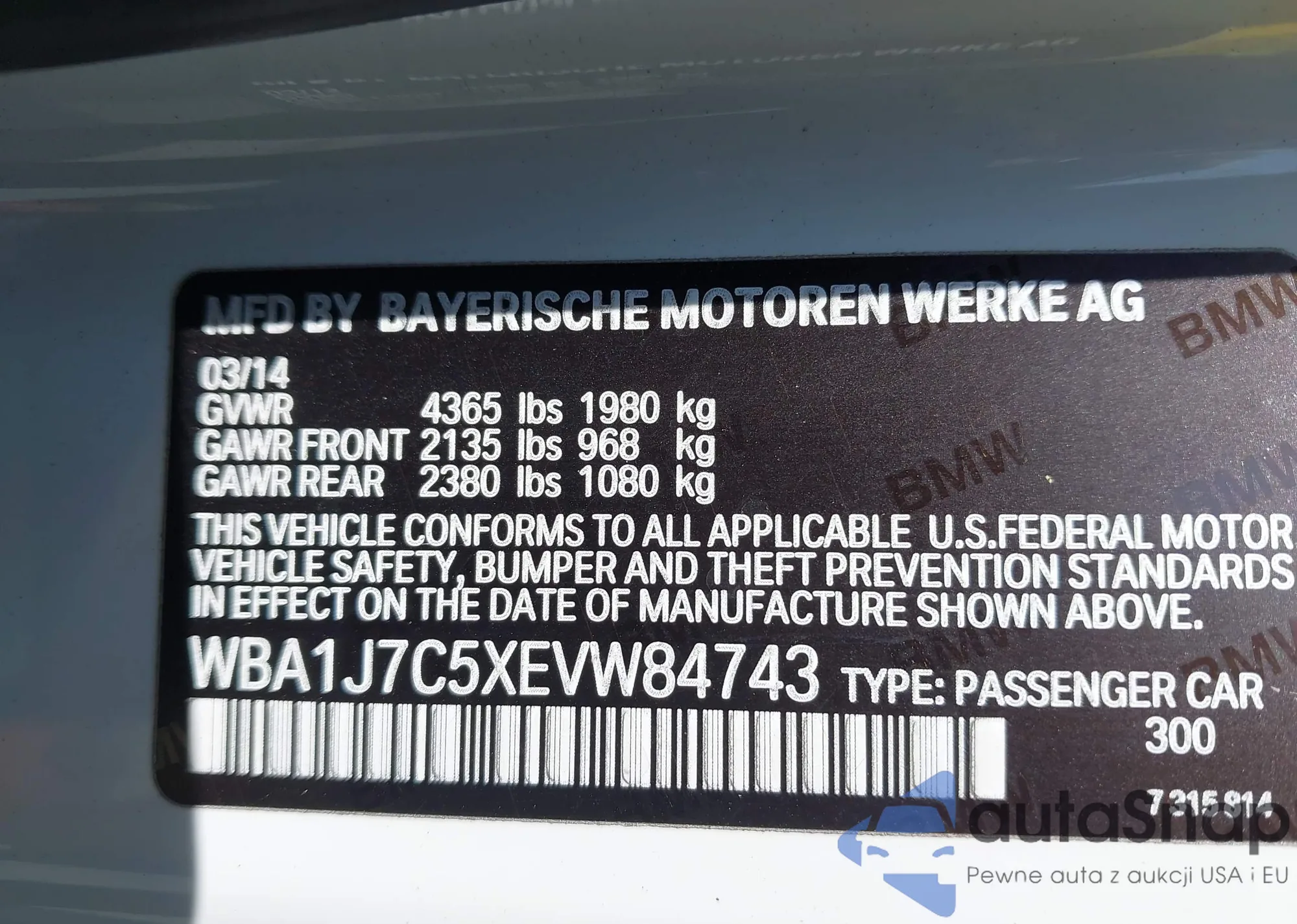 VIN: WBA1J7C5XEVW84743
