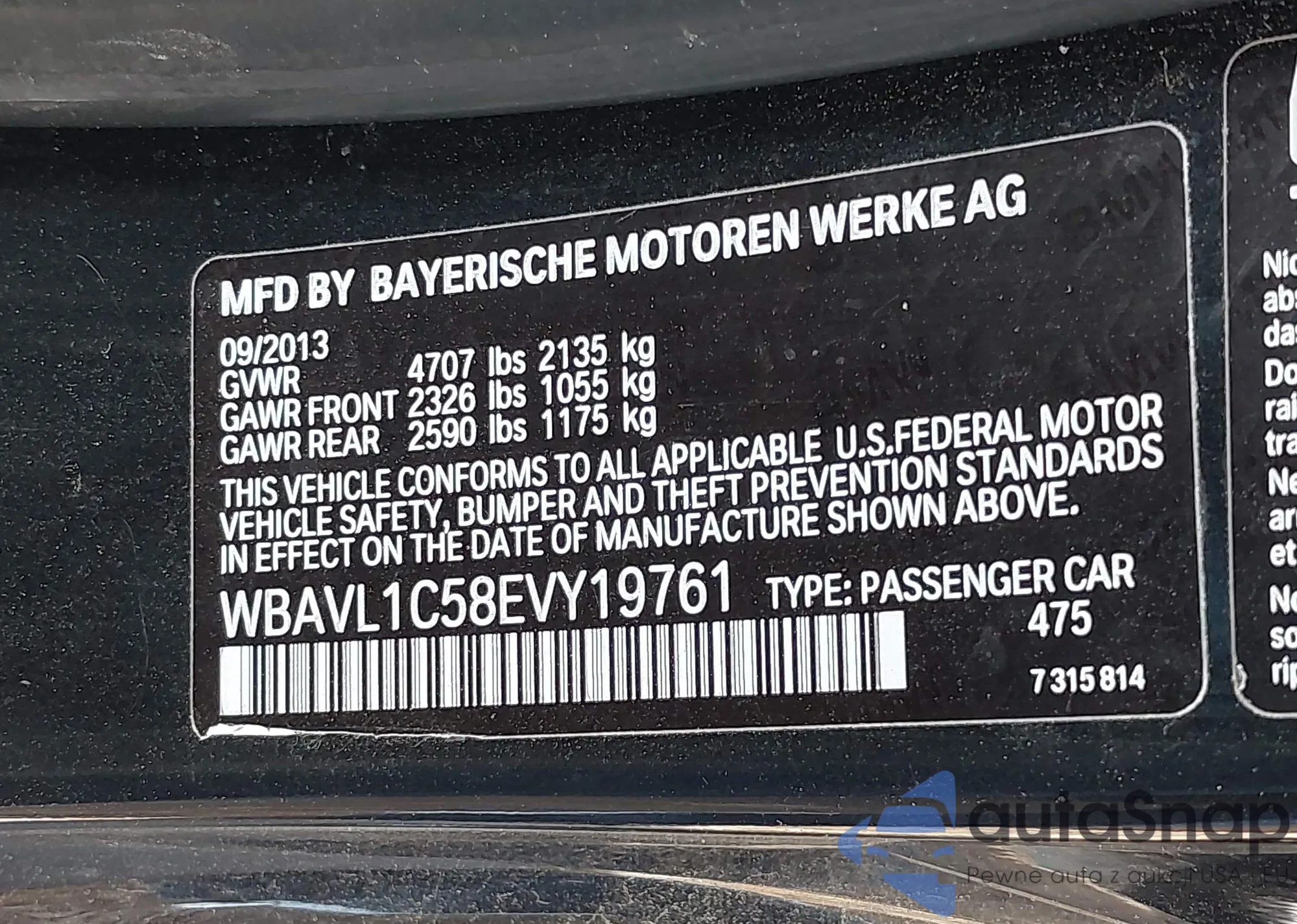 VIN: WBAVL1C58EVY19761