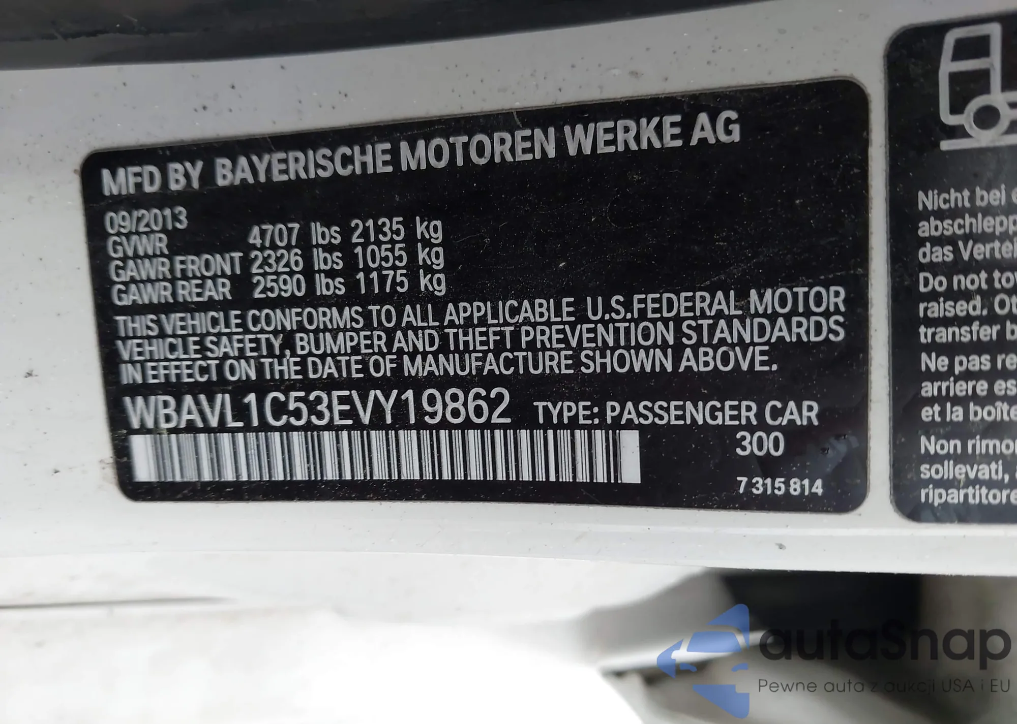 VIN: WBAVL1C53EVY19862