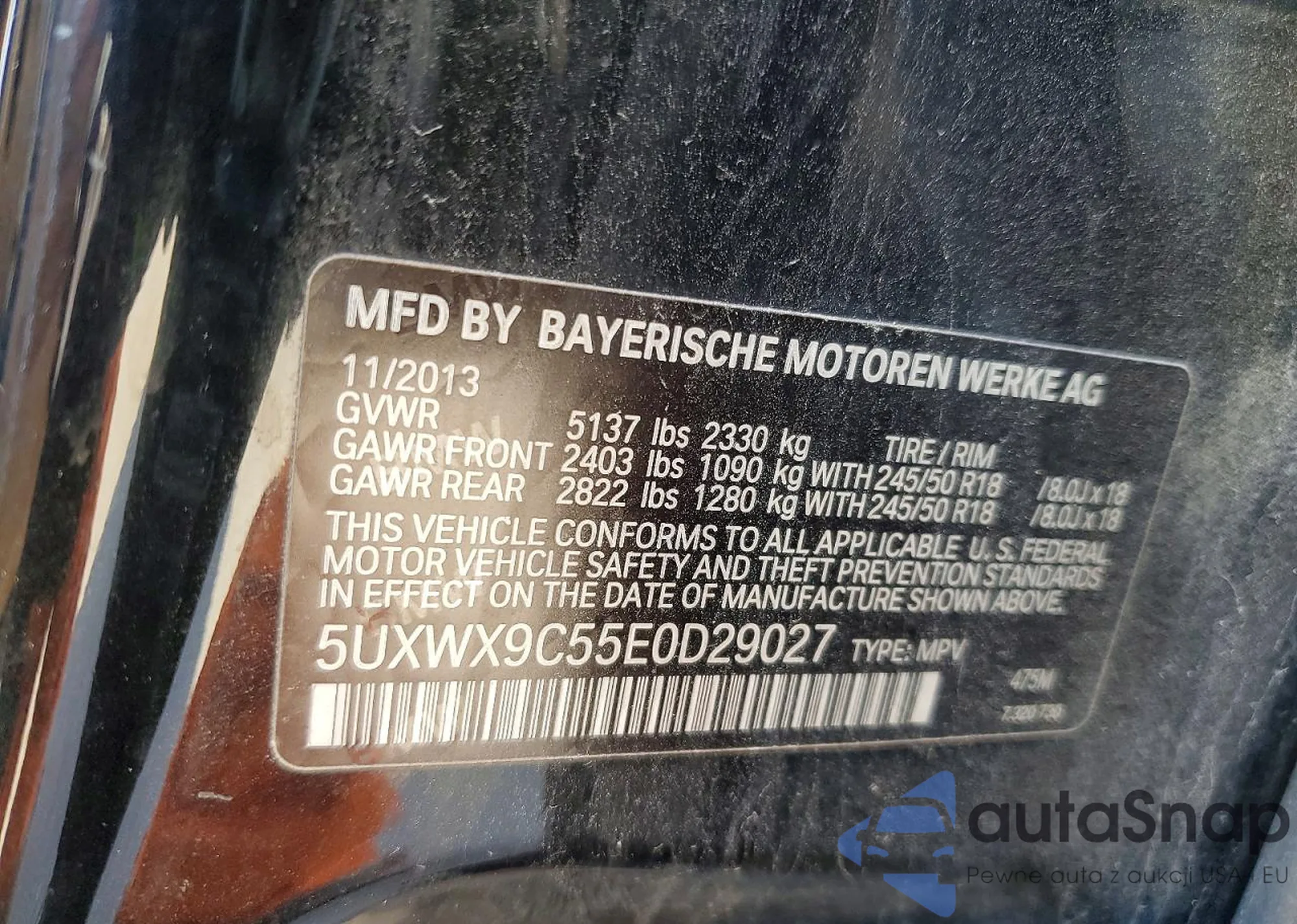 Автомобиль BMW X3 2014 (VIN 5UXWX9C55E0D29027) имеет документы, препятствующие регистрации. Могут возникнуть сложности при экспорте и регистрации. Обратитесь к экспертам AutaSnap для поиска альтернатив.