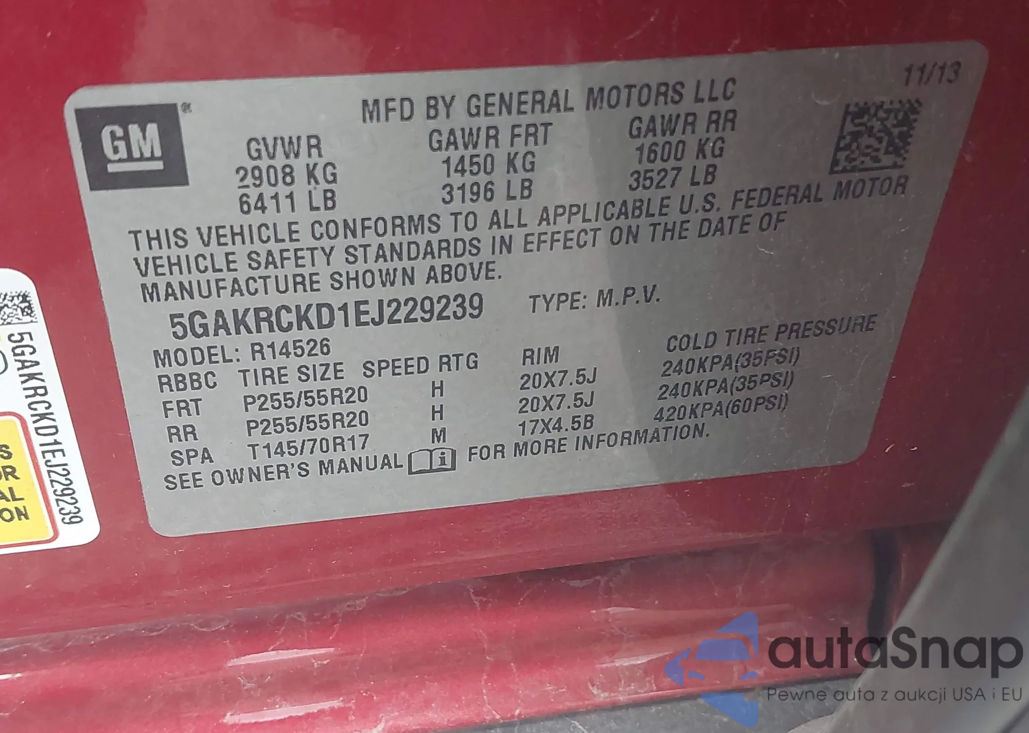 VIN: 5GAKRCKD1EJ229239