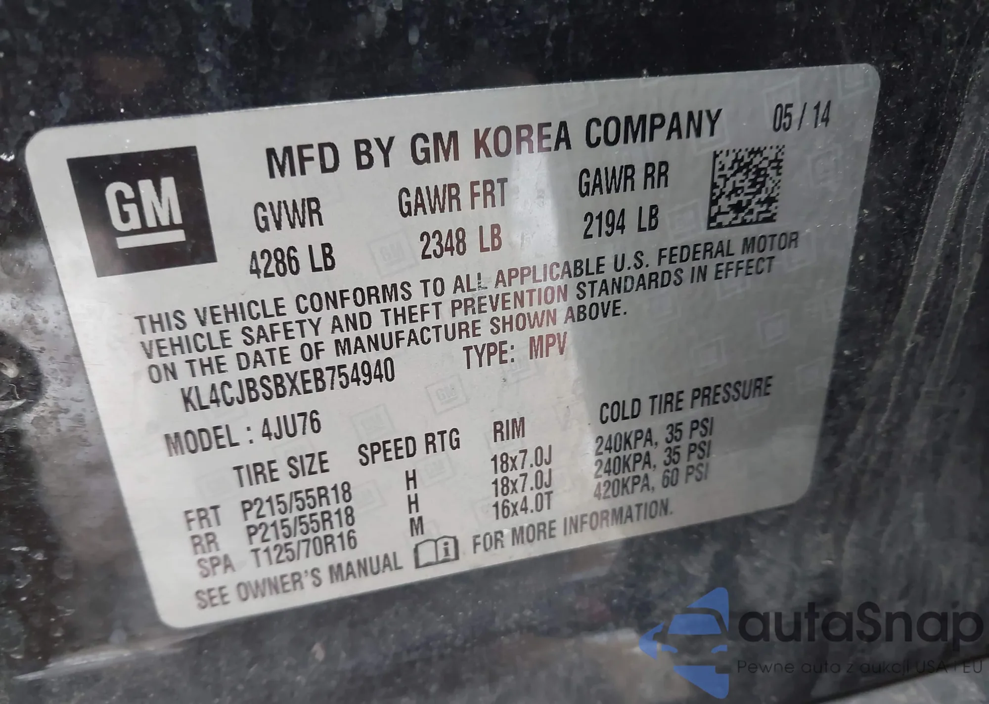 Автомобиль Buick Encore 2014 (VIN KL4CJBSBXEB754940) ранее не участвовал в торгах. Документы чистые, пробег соответствует или ниже среднего по рынку. Продаётся страховой компанией — рекомендуем покупку. Доставка в порт займет около 6–8 недель.