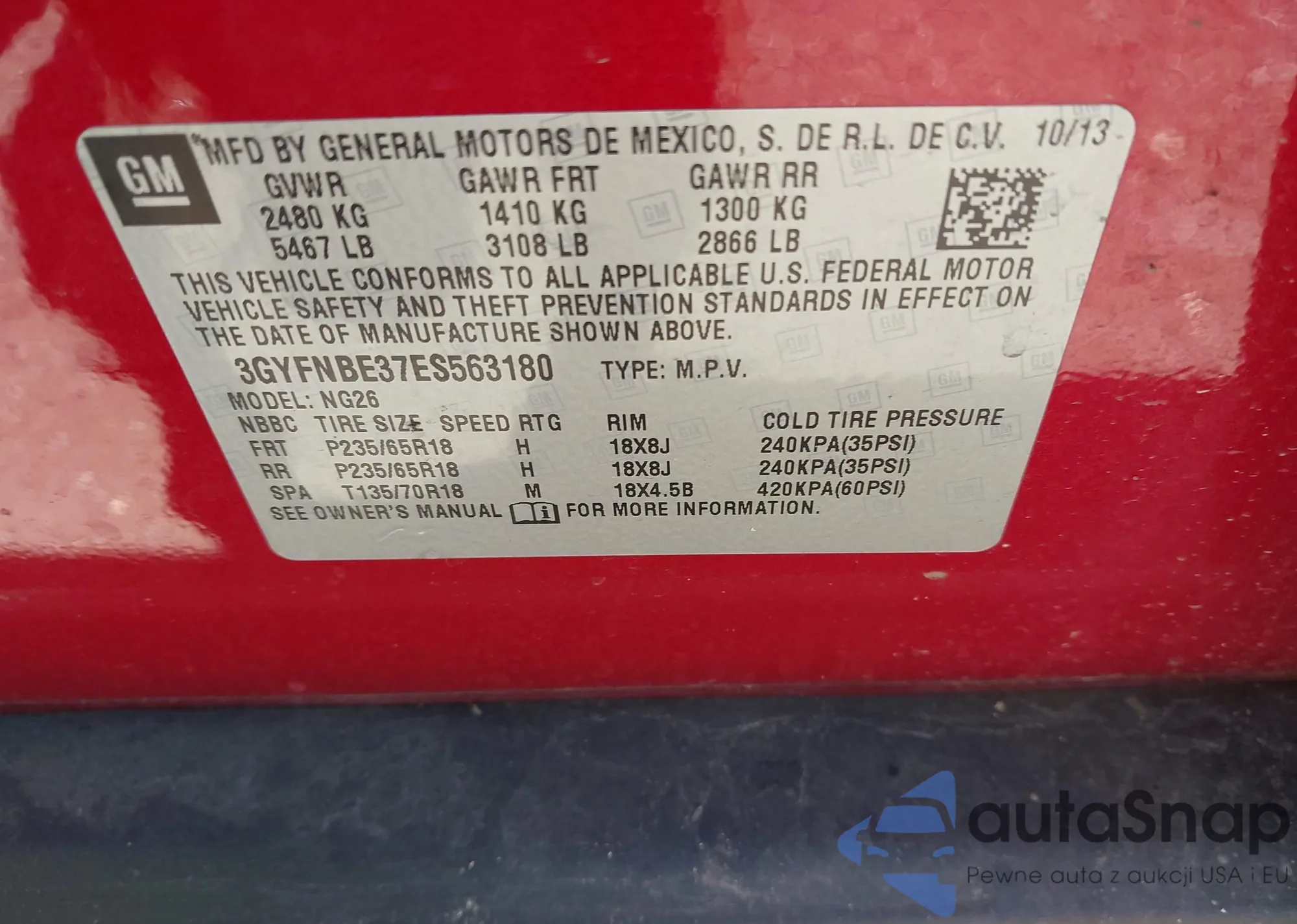 VIN: 3GYFNBE37ES563180