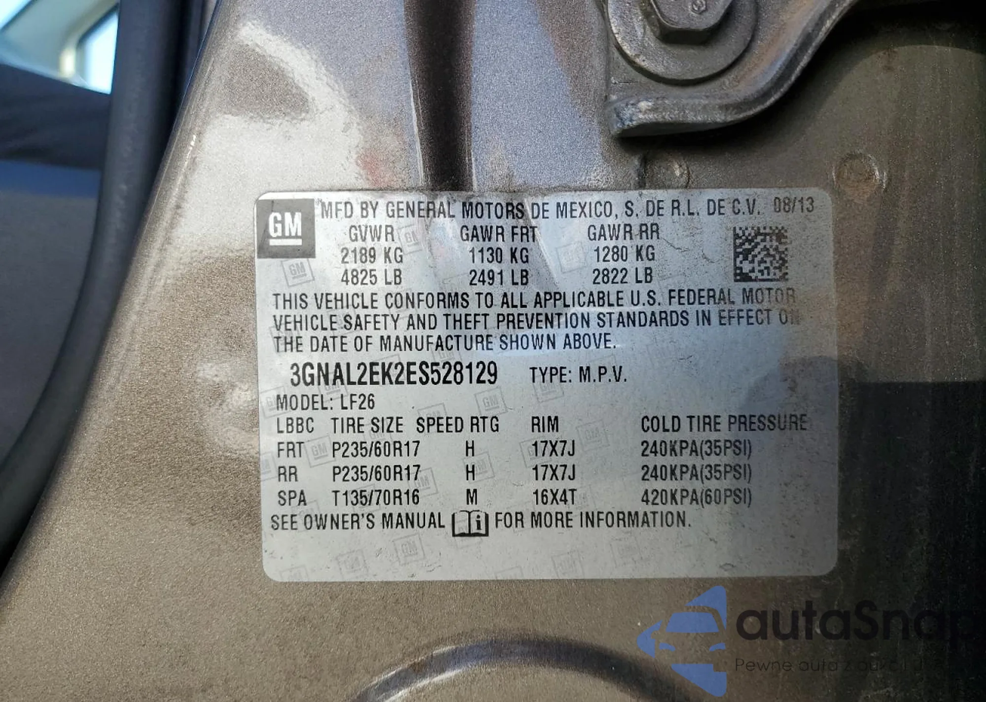 VIN: 3GNAL2EK2ES528129