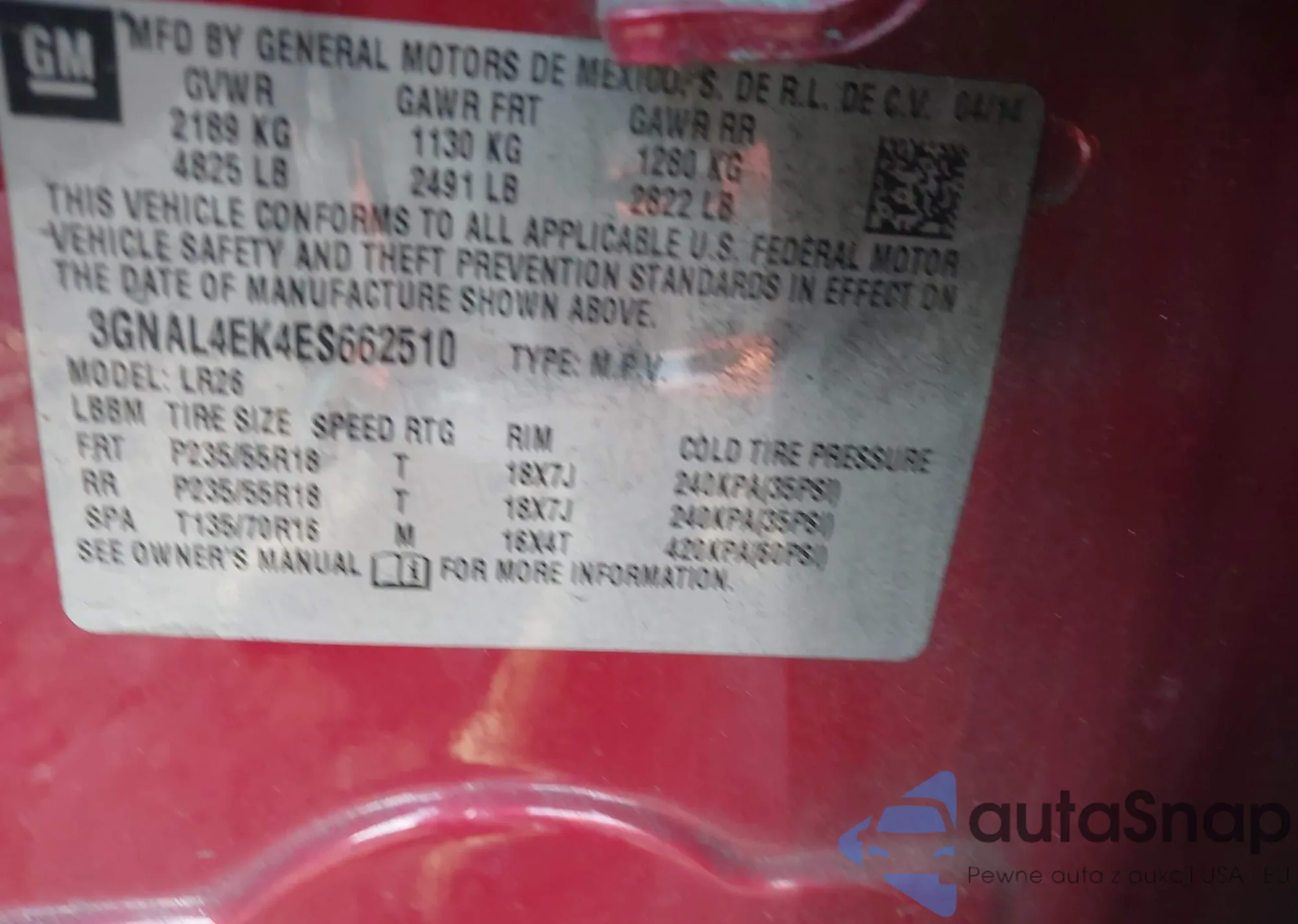 VIN: 3GNAL4EK4ES662510