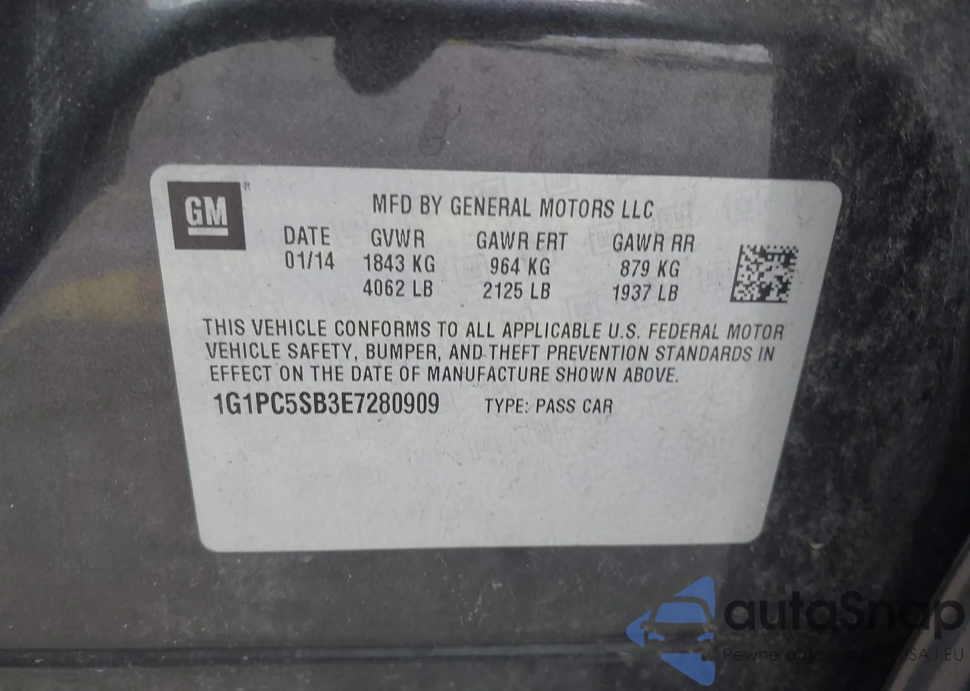 VIN: 1G1PC5SB3E7280909