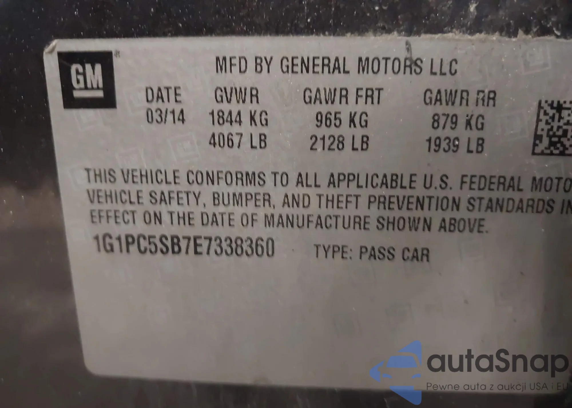 Автомобиль Chevrolet Cruze 2014 (VIN 1G1PC5SB7E7338360) ранее не участвовал в торгах. Документы чистые, пробег соответствует или ниже среднего по рынку. Продаётся страховой компанией — рекомендуем покупку. Доставка в порт займет около 6–8 недель.