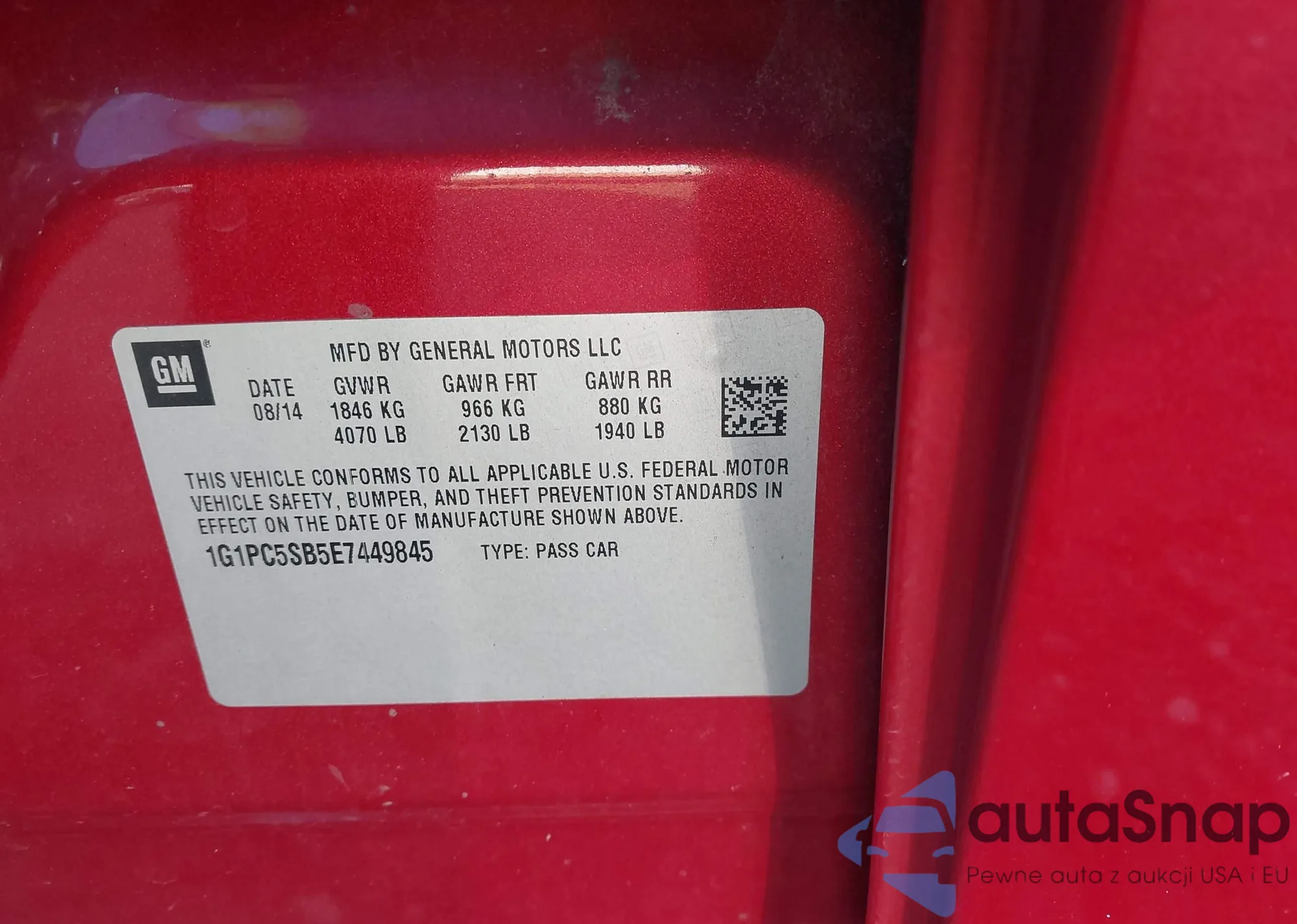 Автомобиль Chevrolet Cruze 2014 (VIN 1G1PC5SB5E7449845) ранее не участвовал в торгах. Документы чистые, пробег соответствует или ниже среднего по рынку. Продаётся страховой компанией — рекомендуем покупку. Доставка в порт займет около 6–8 недель.