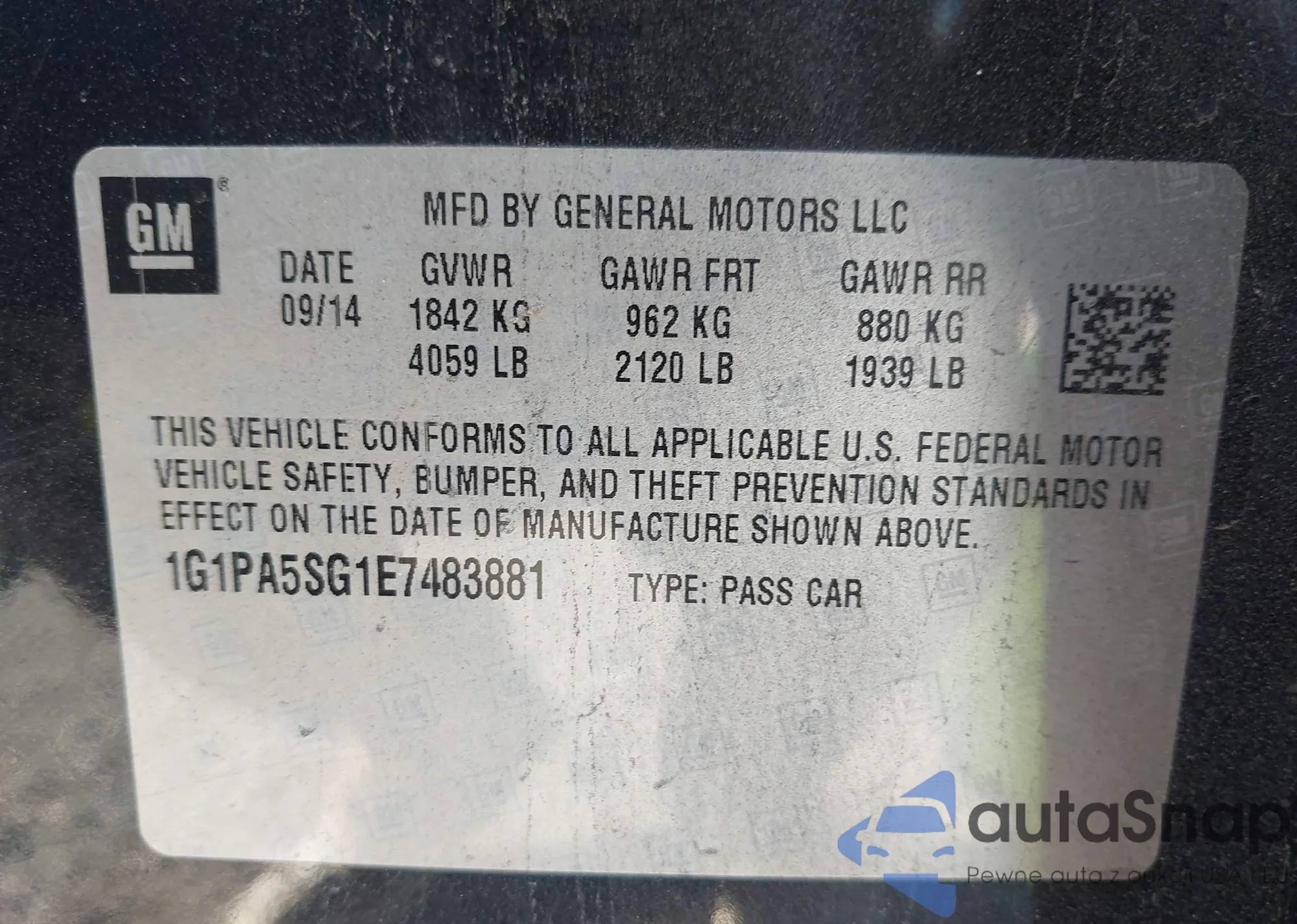 VIN: 1G1PA5SG1E7483881