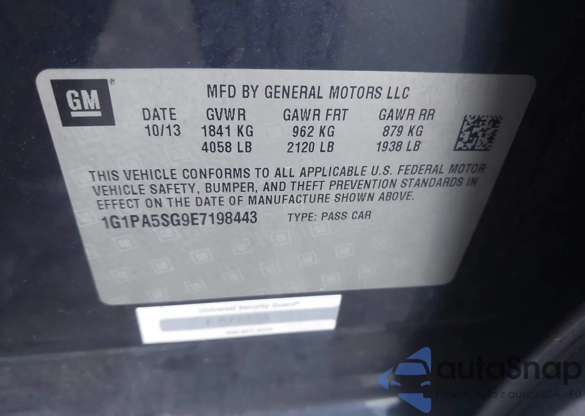 Автомобиль Chevrolet Cruze 2014 (VIN 1G1PA5SG9E7198443) ранее не участвовал в торгах. Документы чистые, пробег соответствует или ниже среднего по рынку. Продаётся страховой компанией — рекомендуем покупку. Доставка в порт займет около 6–8 недель.