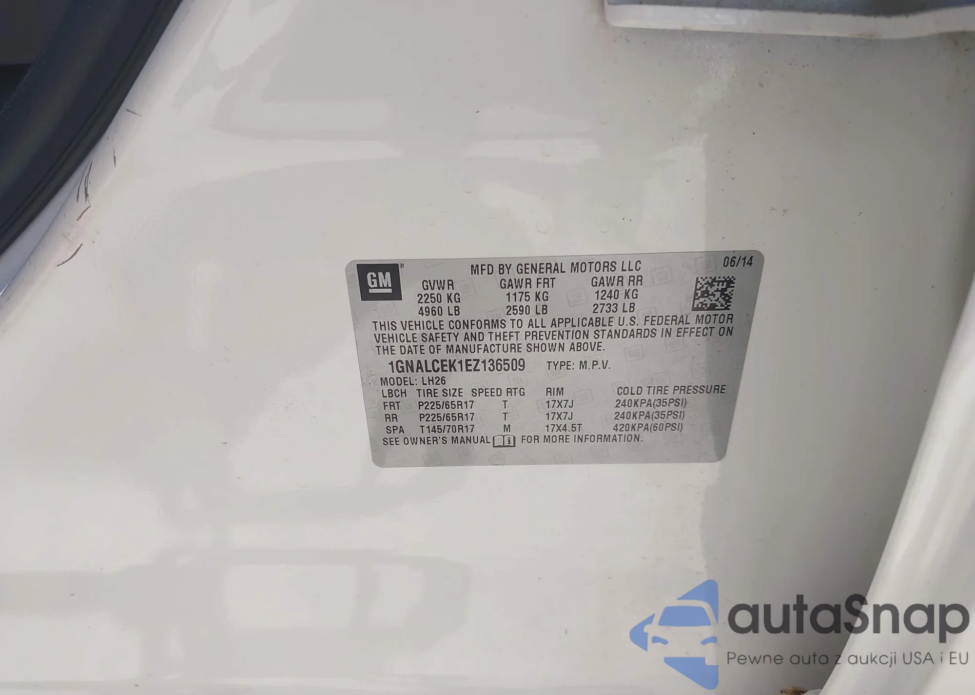 VIN: 1GNALCEK1EZ136509