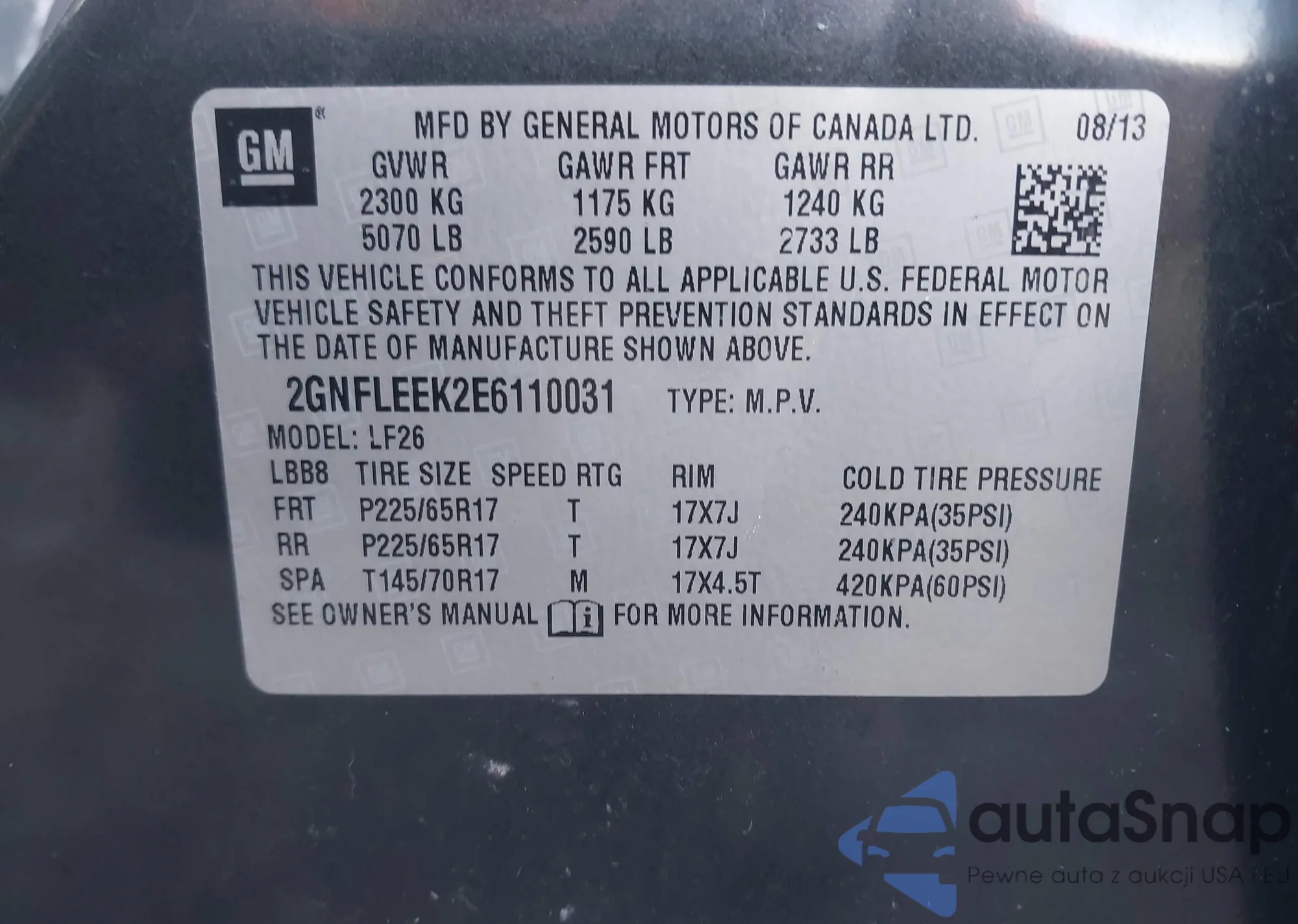 VIN: 2GNFLEEK2E6110031