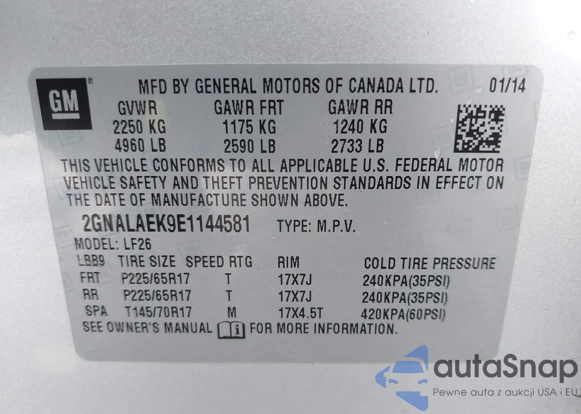 VIN: 2GNALAEK9E1144581