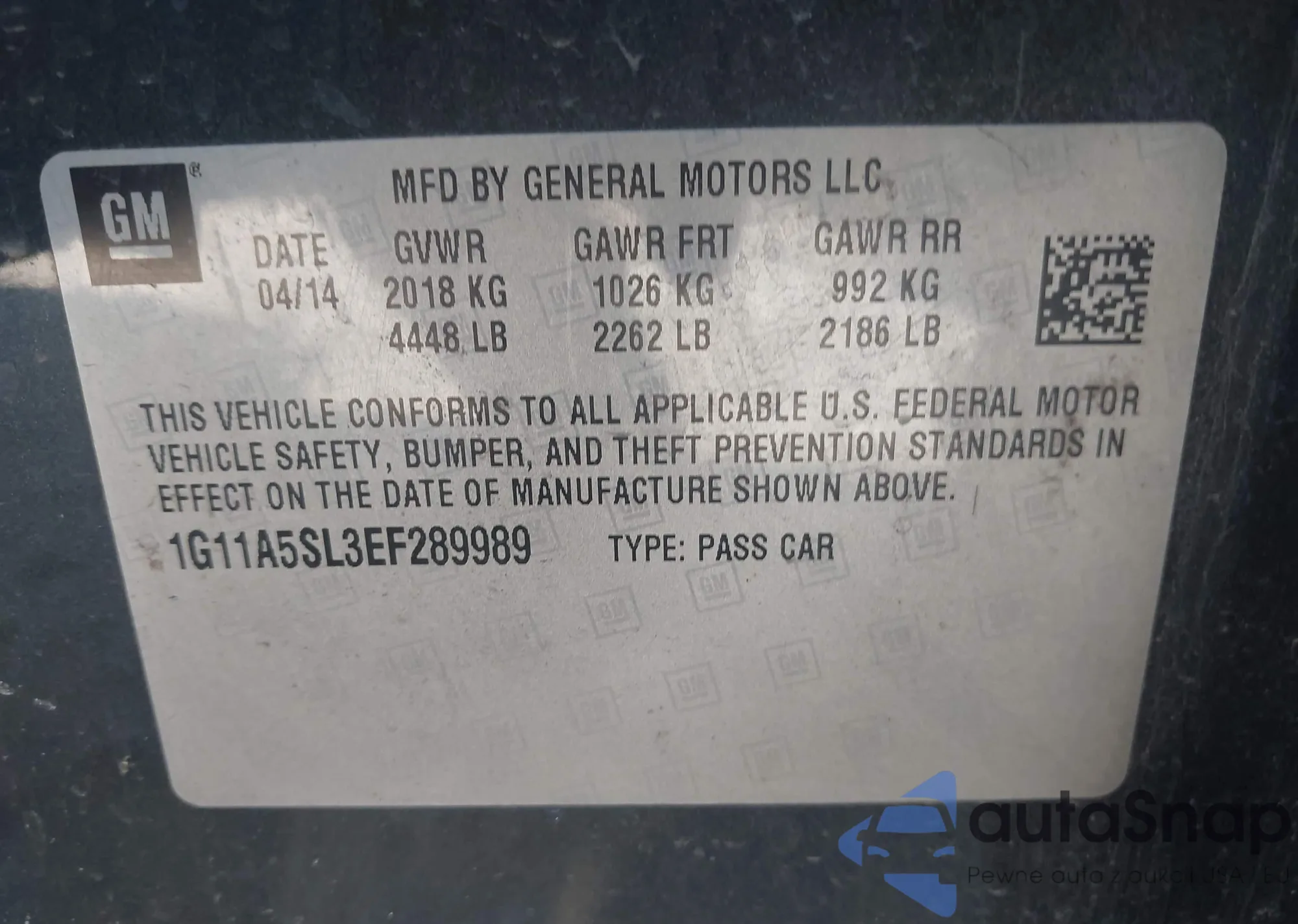 VIN: 1G11A5SL3EF289989
