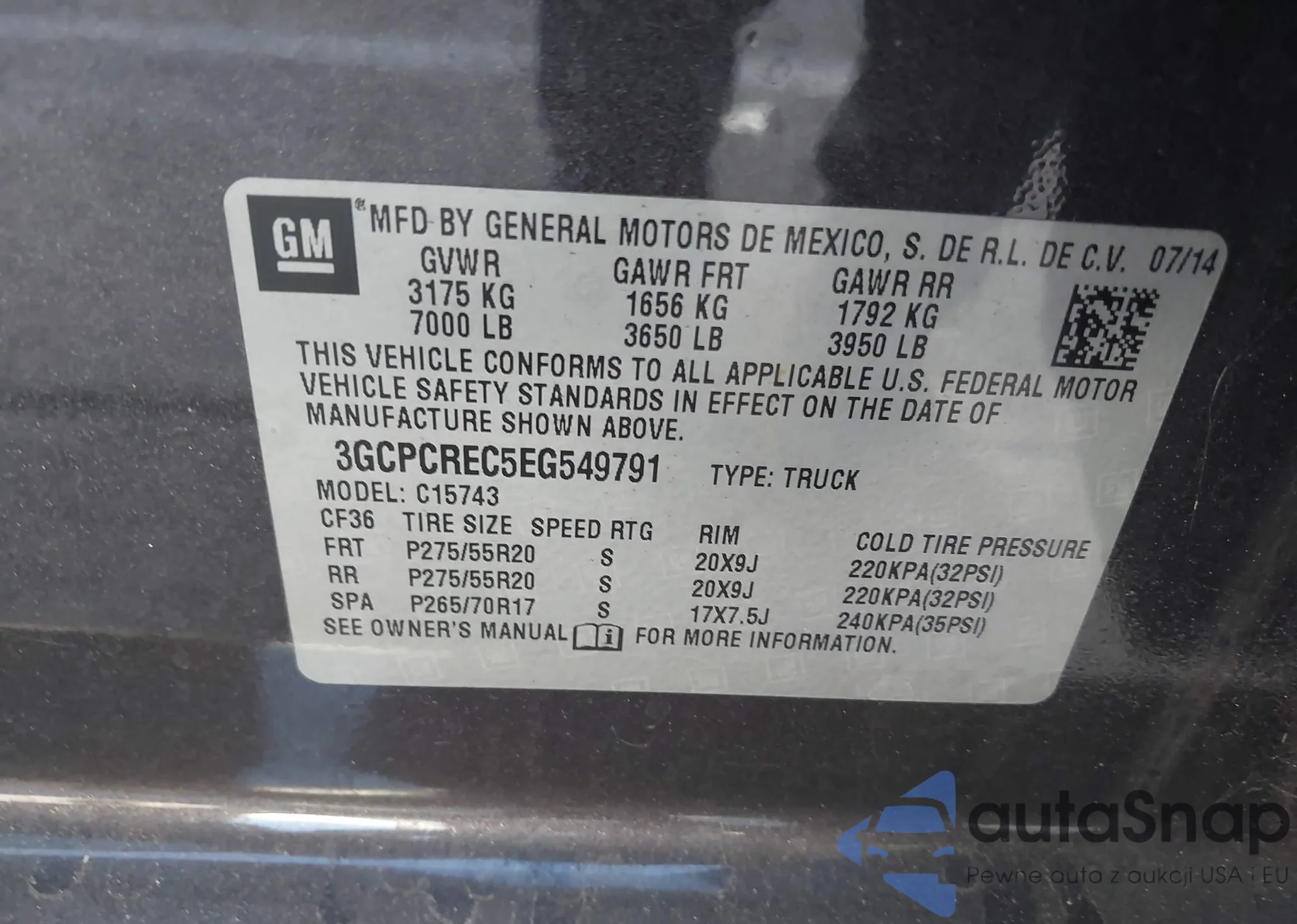 VIN: 3GCPCREC5EG549791